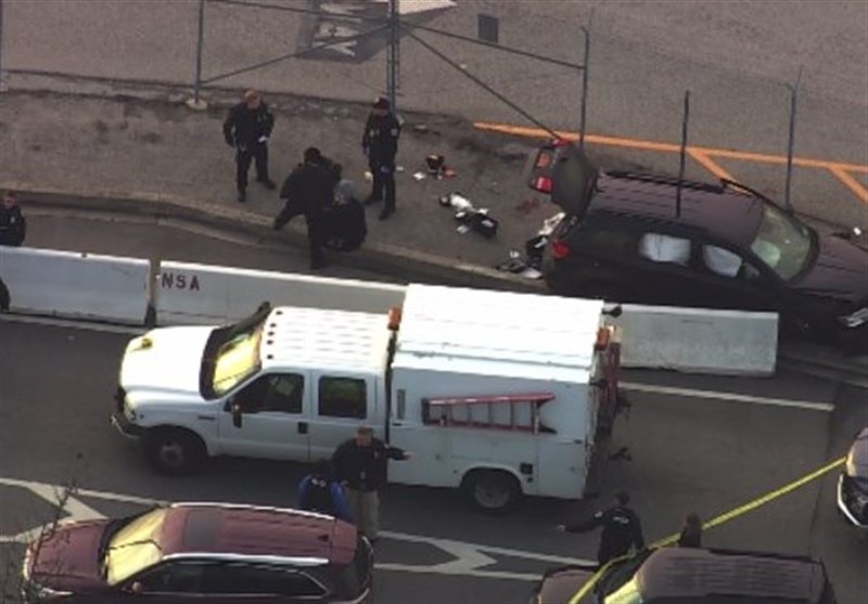 From Chopper4, police could be seen surrounding a handcuffed man who was sitting on the ground. Nearby, a black SUV appears to have crashed into a concrete barrier at one of the facility's secure vehicle entry gates. Bullet holes could be seen in the vehicle's front window, NBC Washington reported.