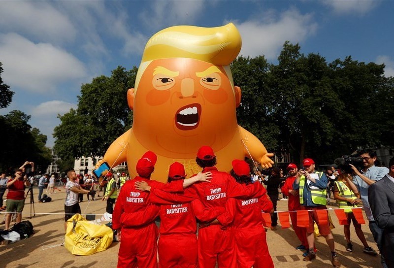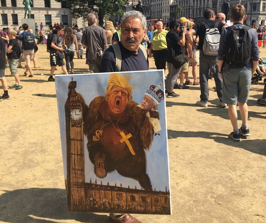 There were many faces of Donald Trump among Friday’s London demonstrators which protesters flaunted in central London as they opposed the US president’s visit to the UK.