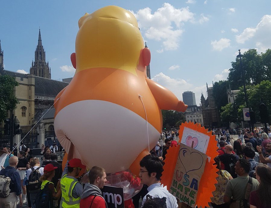The instantly-iconic gigantic orange baby to the furry gorilla locked in a cage were among the Trump-hating visual messages of the protesters.
