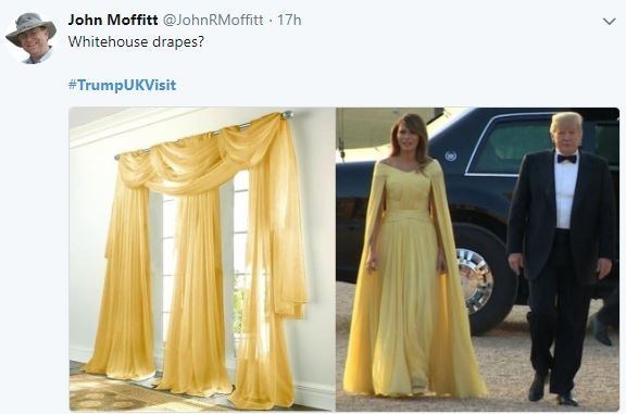 Social media users also took their revenge on Trump’s wife and compared her dress to the “Whitehouse drapes”.