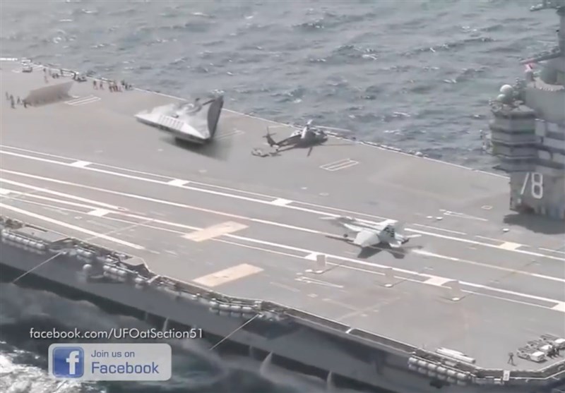 TEHRAN (Tasnim) - A UFO-like object has been captured on board of a US aircraft carrier in the Mediterranean Sea.