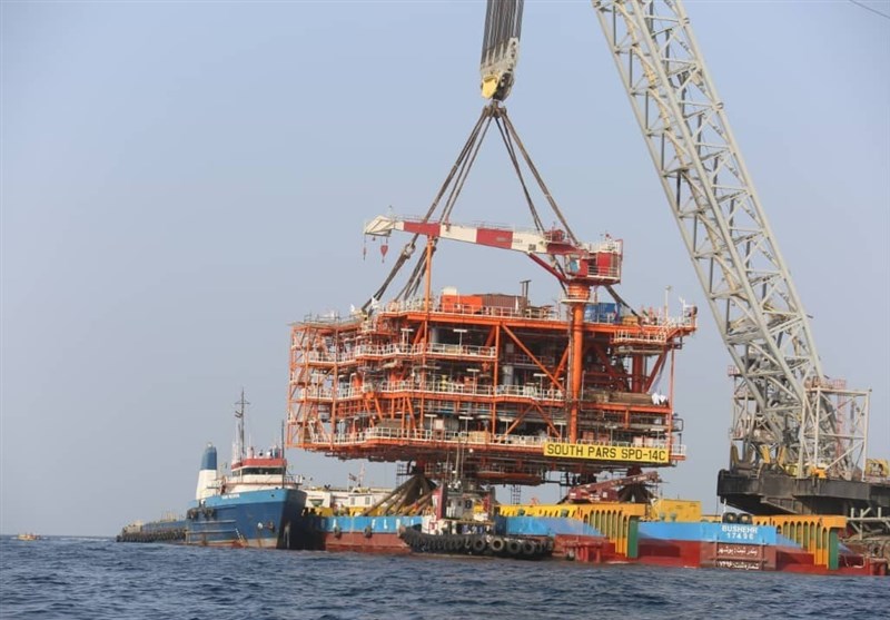 The homegrown platform, weighing 2,300 tons, will be held in place and start pumping gas to the onshore refineries in the Iranian month of Bahman (January 21-February 19).