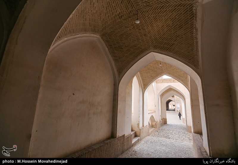 A prominent feature of the mosque is the special architecture of the Gonbad-Khaneh [vault], which is erected on eight massive columns, so that cool air flows in the spaces in the hot seasons in the desert region of Kashan.