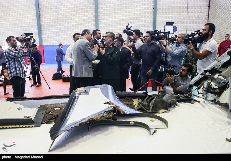 The IRGC Aerospace Force held a press briefing on Friday, displaying some parts of the US stealth drone’s wreckage.