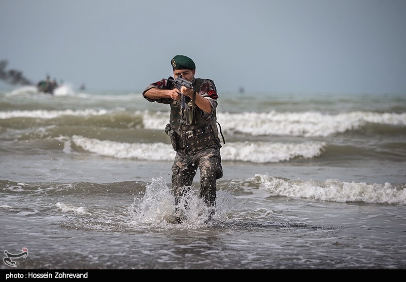 According to Tasnim dispatches, during the military drill in the Caspian Sea on Monday, the Navy marines and commandos managed to capture the mock enemy’s vessels using all sorts of equipment and weapons, including high-speed boats and rocket-launching frigates.