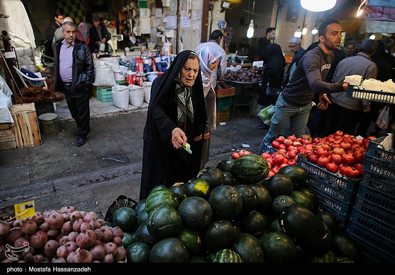 These days many Iranians are out making their purchases of fruits such as pomegranates, watermelons, and various dried nuts.