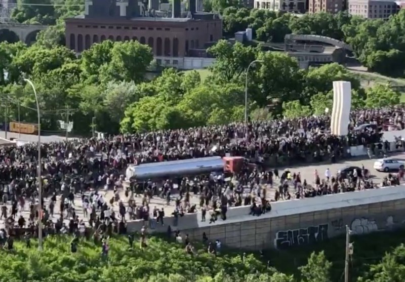 The tanker semi drove along the westbound lanes of Interstate 35 at the moment when it was full of people protesting the killing of George Floyd at the hands of police. The road was closed for road traffic for the march.