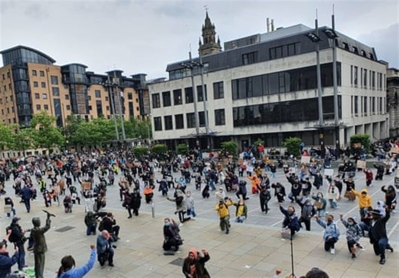 Elsewhere, about 15,000 people were estimated to have demonstrated in Manchester, while thousands more attended protests in Cardiff, Glasgow, Leicester, Milton Keynes and Sheffield, and in many other towns and cities in the UK to demand an end to systemic racism and in solidarity with George Floyd, the black man who died after a white police officer knelt on his neck in Minneapolis almost a fortnight ago.