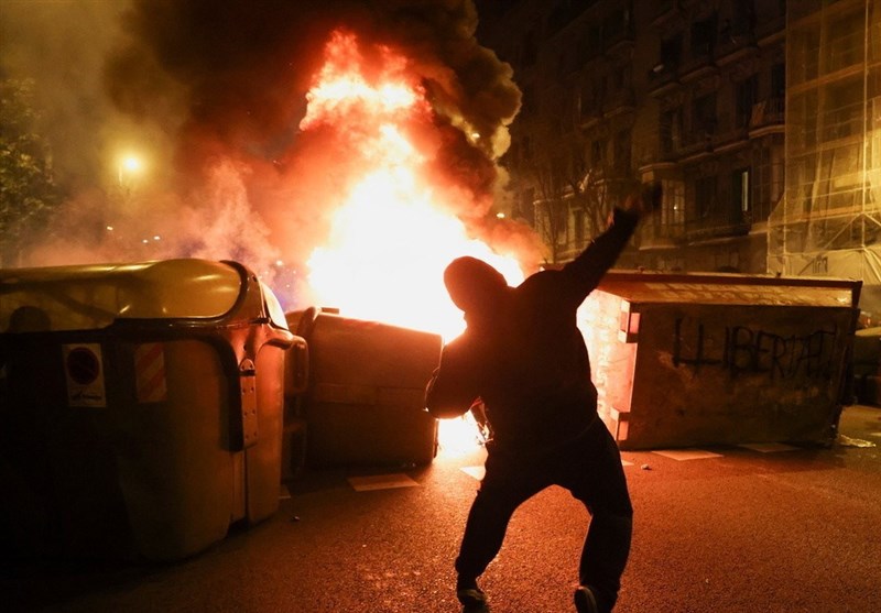 The trouble follows the arrest of rapper Pablo Hasel on Tuesday in the Catalan University of Lleida, where he and dozens of his supporters had barricaded themselves inside. The artist was held after failing to report to prison for a nine-month sentence handed to him for glorifying terrorism and accusing Spain’s disgraced former King Juan Carlos of corruption in a series of tweets.