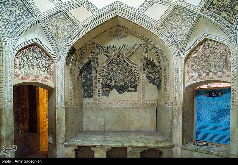The iwans and rooms are beautifully decorated and have Persian architectural elements like Muqarnas, stucco works, etc. to amaze visitors. On the very south eastern corner of the courtyard, there’s a door that leads to the Arg-e Karimkhani’s bathhouse (Hammam). This eye-catching bathhouse has got all the architectural sections of any similar structures, which make it worth to visit. The simple yet likable plasterwork decorations on the walls of this Hammam, imply the love in flowers and nature, what Shirazi artists have always been inspired by.