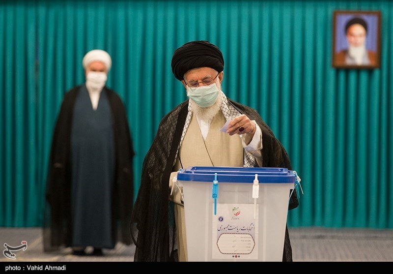 The Leader cast his ballot at the Imam Khomeini Husseiniya in Tehran at 7 am local time, with enthusiastic journalists and photographers present at the site of the voting.