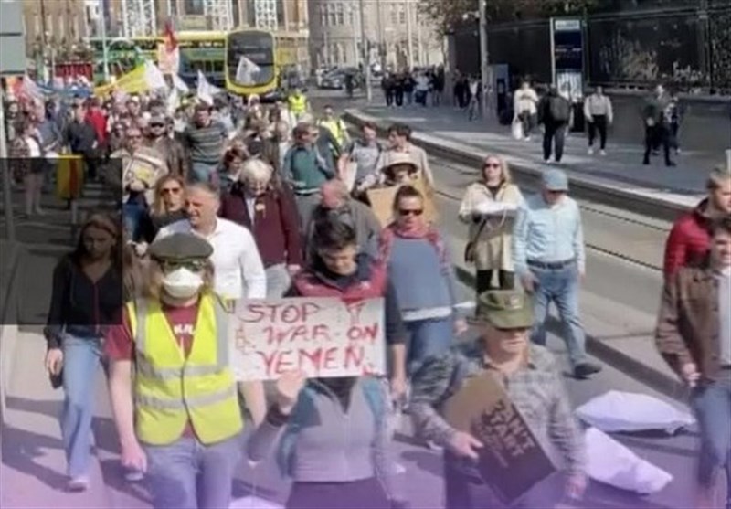 The protesters slammed the Irish government over its failure to condemn the Saudi aggression on the impoverished country, comparing its stance on the war in Yemen to its “robust intervention” in the conflict in Ukraine, Middle East Eye reported on Sunday.