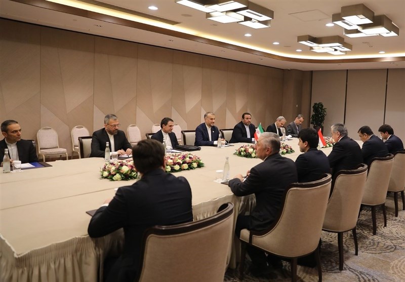 During a visit to Tashkent for participation in a meeting of the foreign ministers of the Economic Cooperation Organization (ECO), Iranian Foreign Minister Hossein Amirabdollahian held talks with his Tajik counterpart, Sirojiddin Muhriddin, to weigh plans for developing bilateral ties and discuss the regional and international topics of mutual interest.