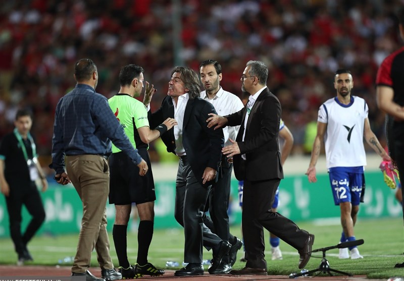 The Esteghlal coach harshly criticized the referee in the final moments of the match and was shown a red card.