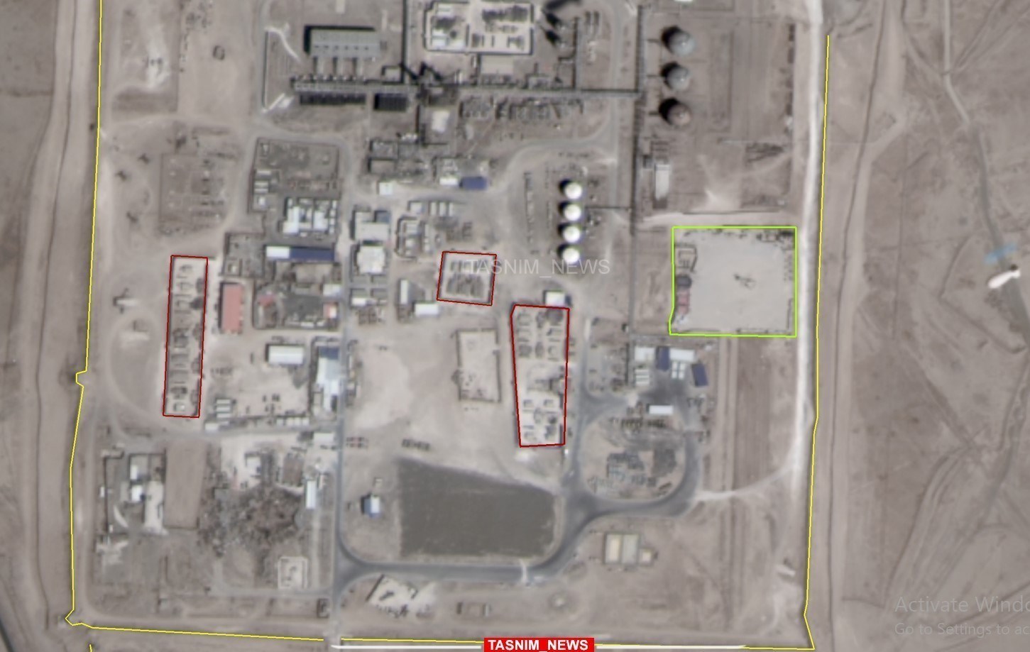 The yellow lines indicate newly erected defensive walls within the past two years, while the dark red areas mark military compounds established during the same period. In addition, the green region highlights the surveillance balloon management area, which is also visible on the right side of this central hub.