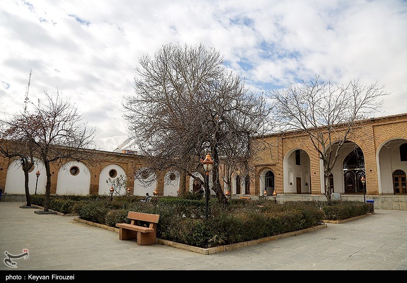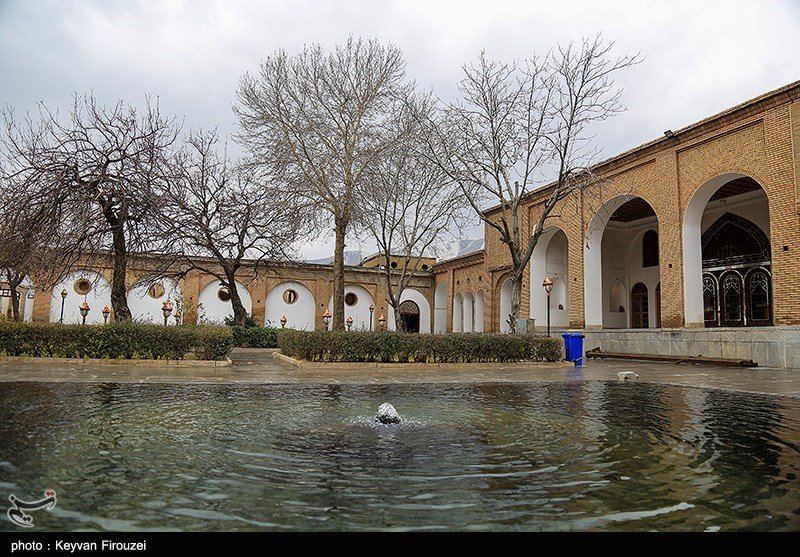 Stucco, old Sashes, carved stones, mirror decoration, carved brick and embowed arches has been reflected skillfully and beautiful in this building. undefined In addition to the building entrance and the entrance corridor, aqueducts and dividing water room, has four gates that they are known as the outer courtyard (main), inner courtyard, kitchen garden and employees yard. In the southwest corner of Edifice, a specific bath was built in the architectural style of Iranian bath with lime designs.
