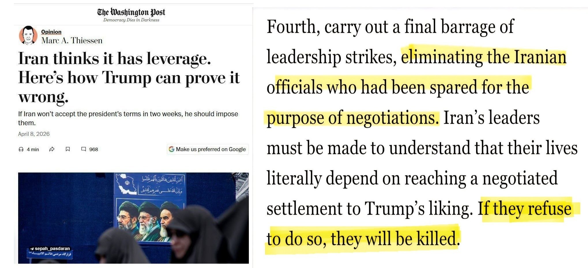 “While US authorities accuse Iran of lacking ‘good faith’ and engaging in ‘extortion’, elements within the US policy and media space are outright recommending the assassination of Iranian negotiators in the event that negotiations fail,” he said.