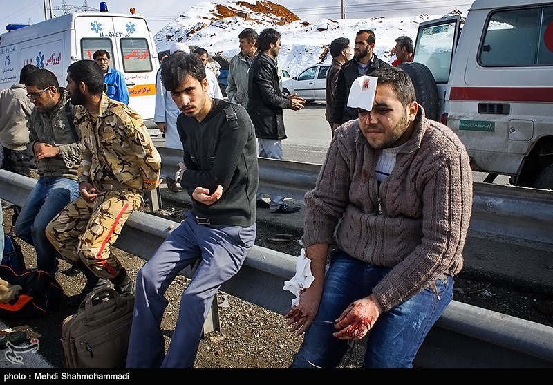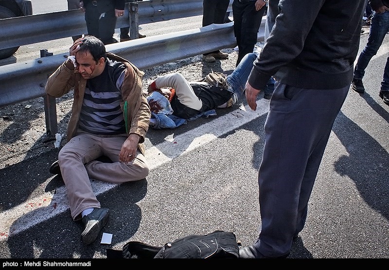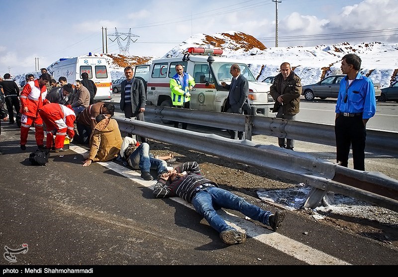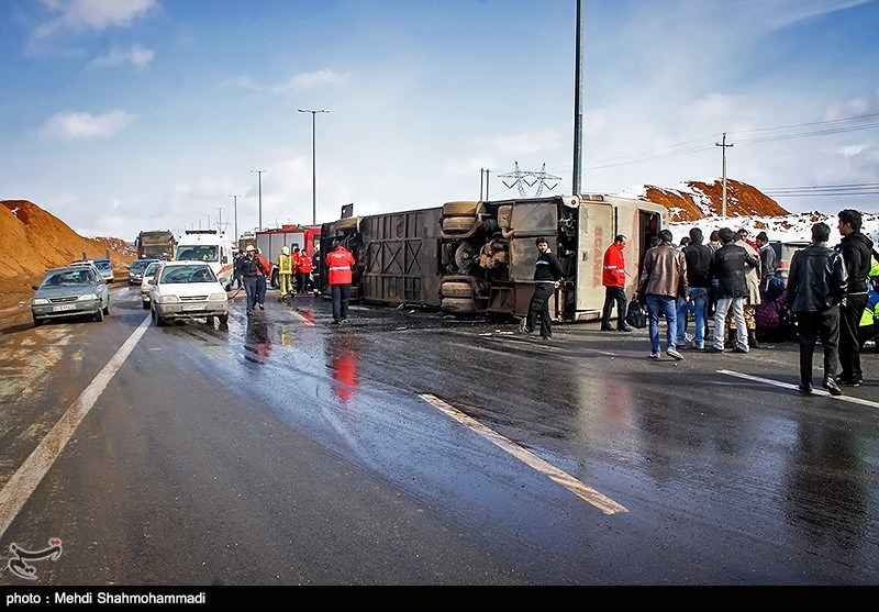 18 مجروح در واژگونی اتوبوس-اتوبان تهران قم
