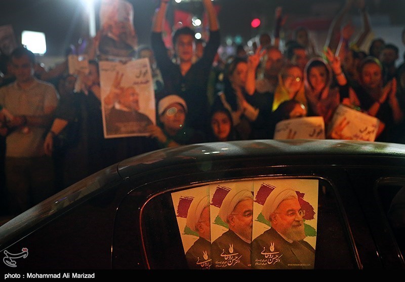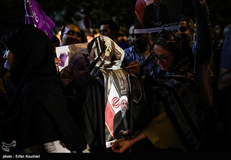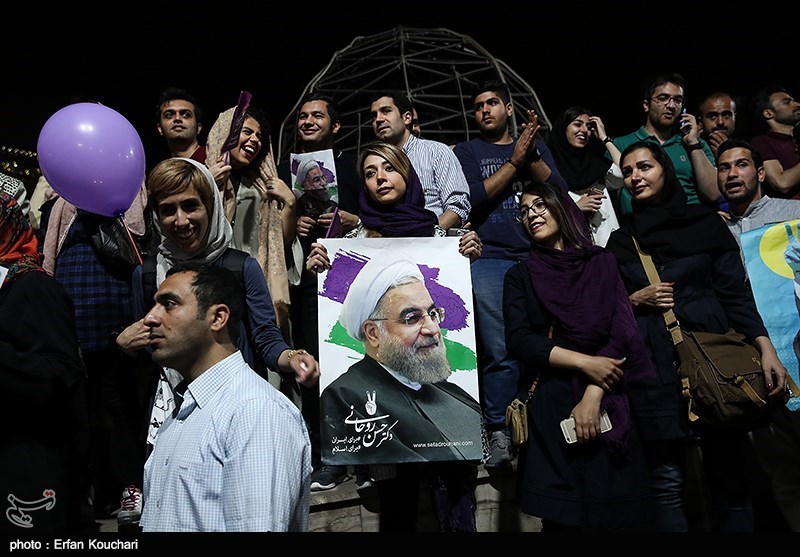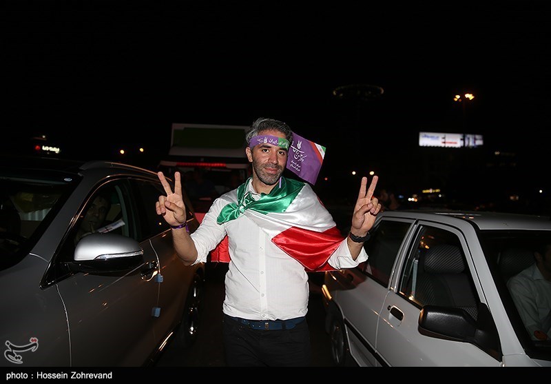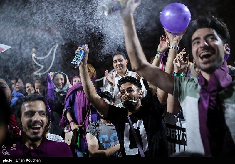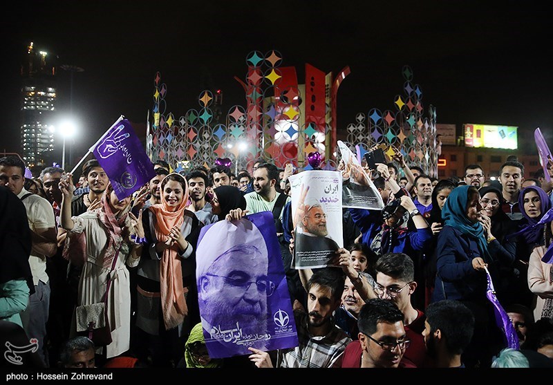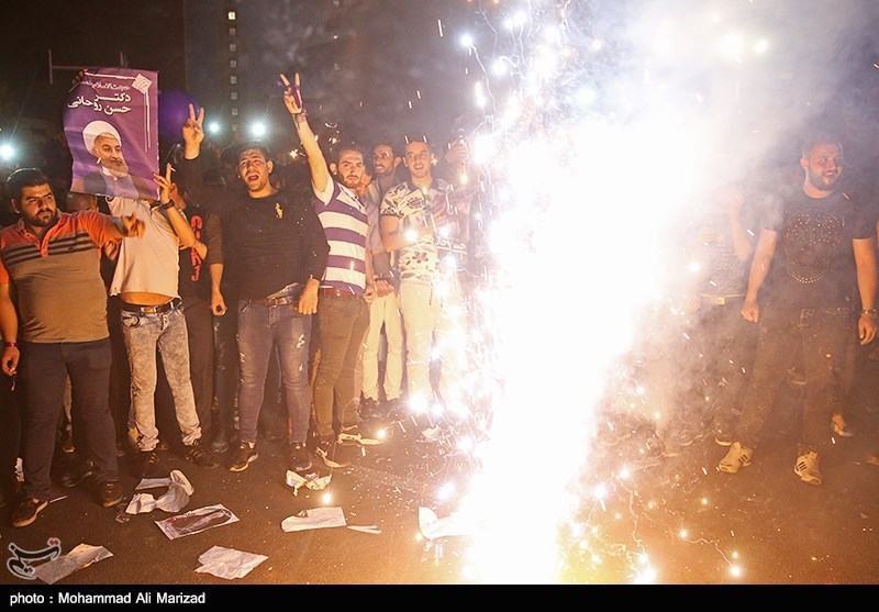 شادی هواداران حسن روحانی پس از اعلام نتایج انتخابات