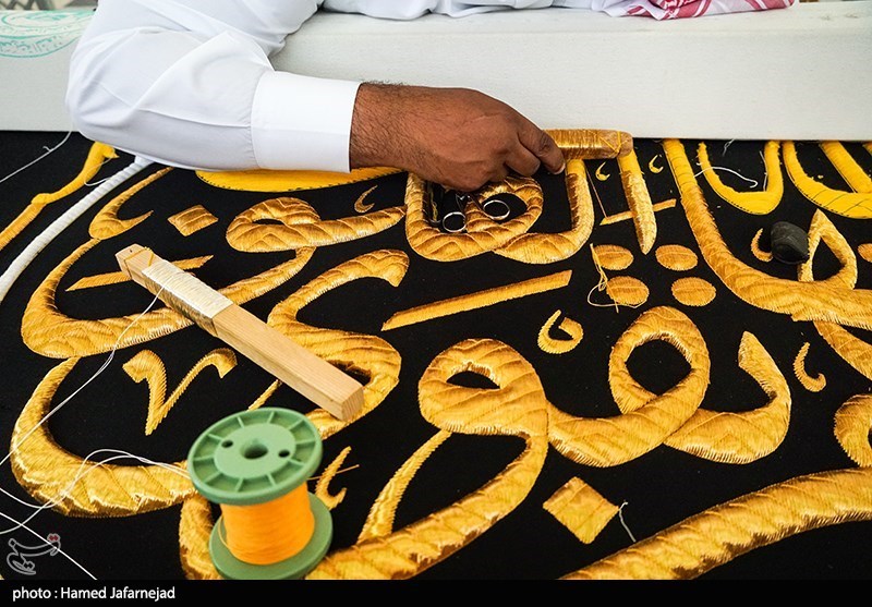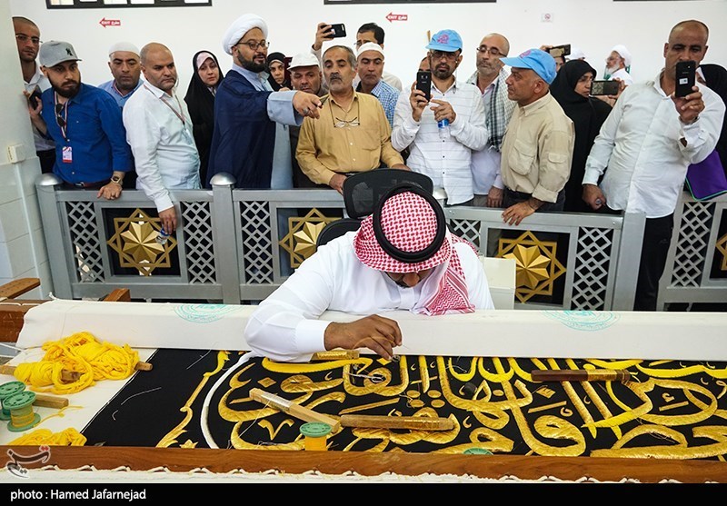 یکی از متعلقات کعبه،که همواره مورد عنایت خاص مردم و حکومتها بوده، پرده یا همان «کسوة الکعبه» است.کارخانهای که پرده خانه خدا را تهیه میکند از بافتهای دستی و ماشینی و افراد متخصص در این مورد خاص بهره می برد، بر روی این پرده آیات قرآن با خط زیبا و با نخهای طلا و نقره بافته می شود. جنس آن از حریر طبیعی و خالص است. ارتفاع آن 14 متر و نوار دور این پوشش به عرض 95 سانتی متر و طول 4500 سانتی متر است عباراتی چون «یا حی یا قیوم»، «یا رحمن یا رحیم» و «الحمدالله رب العالیمن» با رنگ طلایی نوشته شده است.