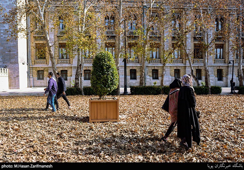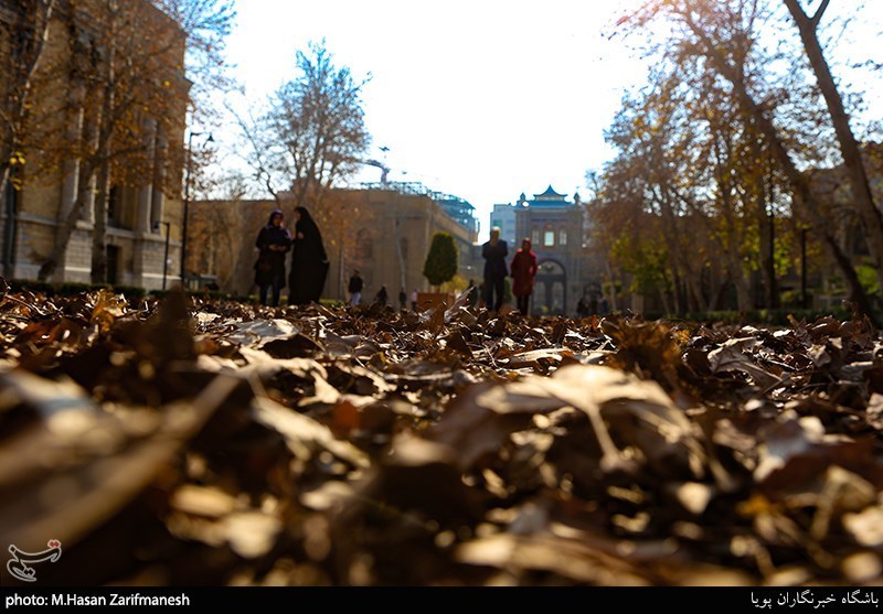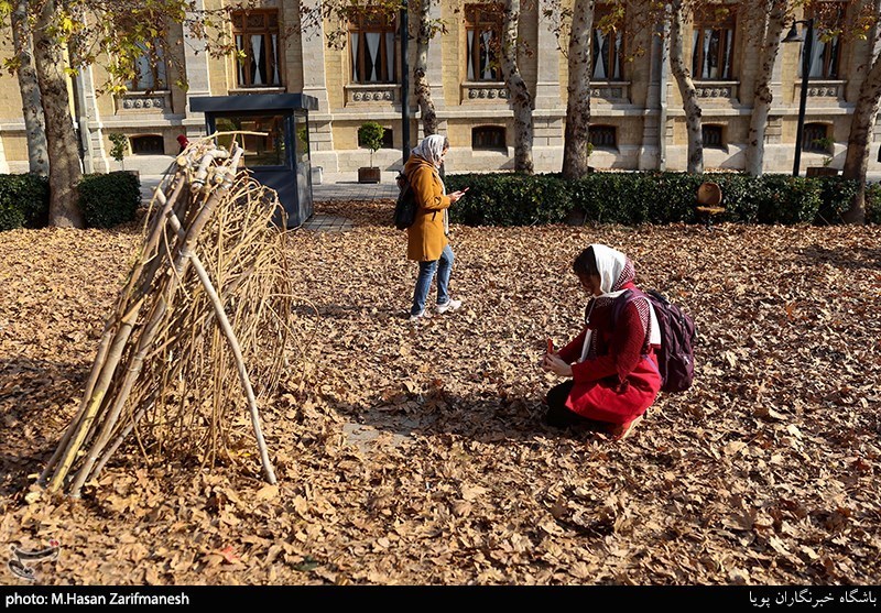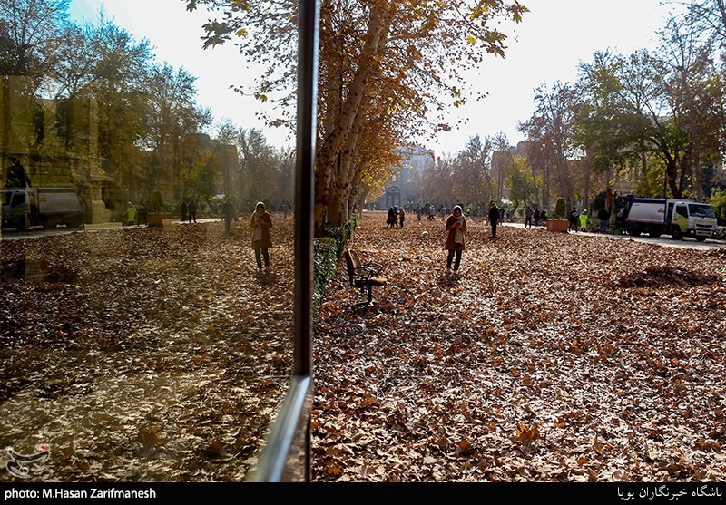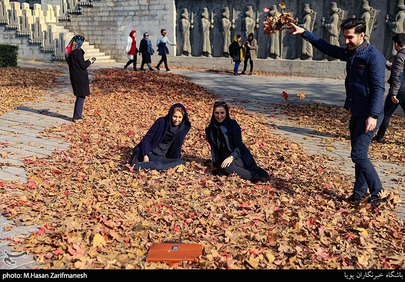 در آخرین روزهای فصل خزان، تعدادی از مردم و جوانان در میدان مشق تهران مشغول گرفتن عکس یادگاری با برگ های زرد و زیبایی درختان پاییزی هستند.