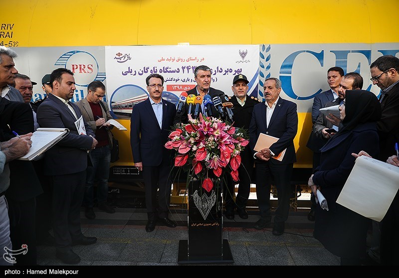 مراسم بهرهبرداری از 243 دستگاه ناوگان ریلی ساخت ایران صبح امروز یکشنبه 8 دی با حضور محمد اسلامی وزیر راه و شهرسازی و سعید رسولی مدیرعامل راه آهن در ایستگاه راهآهن برگزار شد.
