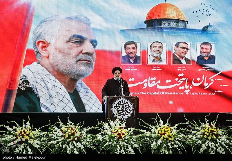مراسم اربعین شهادت سپهبد حاج قاسم سلیمانی و شهدای مقاومت عصر امروز با حضور حجتالاسلام سیدابراهیم رئیسی رئیس قوه قضاییه، خانواده شهید سلیمانی، مقامات کشوری و لشکری، خانواده معظم شهدا، جانبازان و رزمندگان و جمع زیادی از اقشار مختلف مردم در مصلی بزرگ امام علی(ع) شهر کرمان برگزار شد.