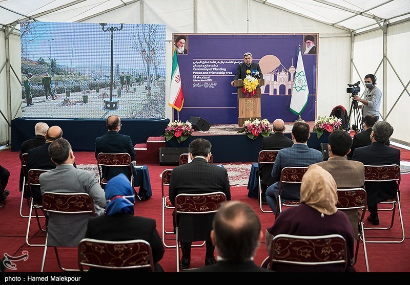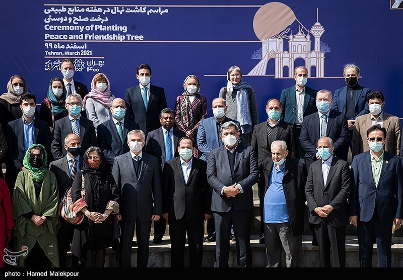 مراسم کاشت درخت صلح و دوستی صبح امروز دوشنبه 18 اسفند با حضور پیروز حناچی شهردار تهران و برخی از سفرای کشورهای خارجی در مجموعه باغ کتاب تهران برگزار شد.