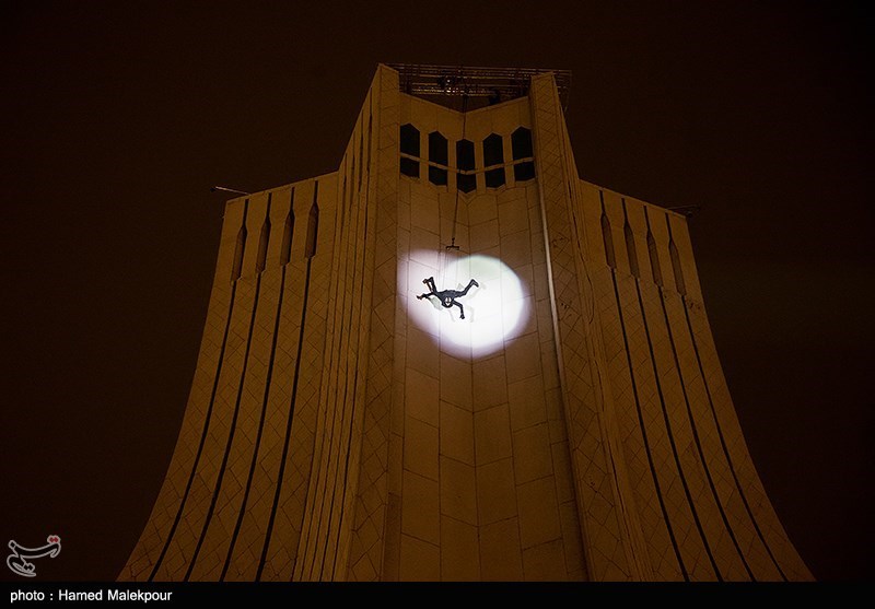 پرواز معلق(رینگینگ) با عنوان "دیوار آسمان" به کارگردانی یاسر خاسب شامگاه دوشنبه 25 اسفند بر روی برج آزادی به اجرا درآمد.
