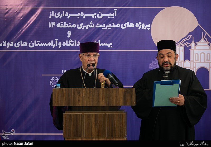 آیین بهره برداری از پروژه های مدیریت شهری منطقه 14 و بهسازی میدانگاه و آرامستان های دولاب صبح امروز چهارشنبه 2 تیرماه با حضور پیروز حناچی شهردار تهران، محسن هاشمی رئیس شورای اسلامی شهر و جمعی از مبلغین مذهبی ارامنه شهر تهران برگزار شد.