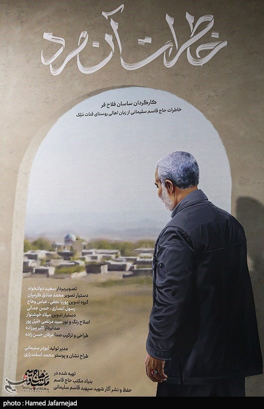 مراسم رونمایی از مستند "خاطرات آن مرد" به کارگردانی حجت الاسلام ساسان فلاح فر با موضوع خاطرات حاج قاسم سلیمانی از زبان اهالی روستای قنات مَلِک کرمان صبح امروز شنبه 4 دی ماه 1400 در بنیاد مکتب حاج قاسم حفظ و نشر آثار شهید سپهبد قاسم سلیمانی برگزار شد.تصویربردار سعید دولتخواه و عباس وهاج تدوینگر این مستند می باشند. مستند "خاطرات آن مرد" از 3 دی ماه در شبکه های سیمای جمهوری اسلامی ایران به روی آنتن می رود.