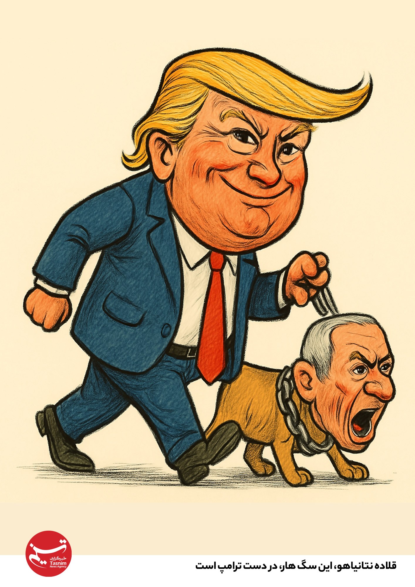 کاریکاتور/ قلاده نتانیاهو، این سگ هار، در دست ترامپ است