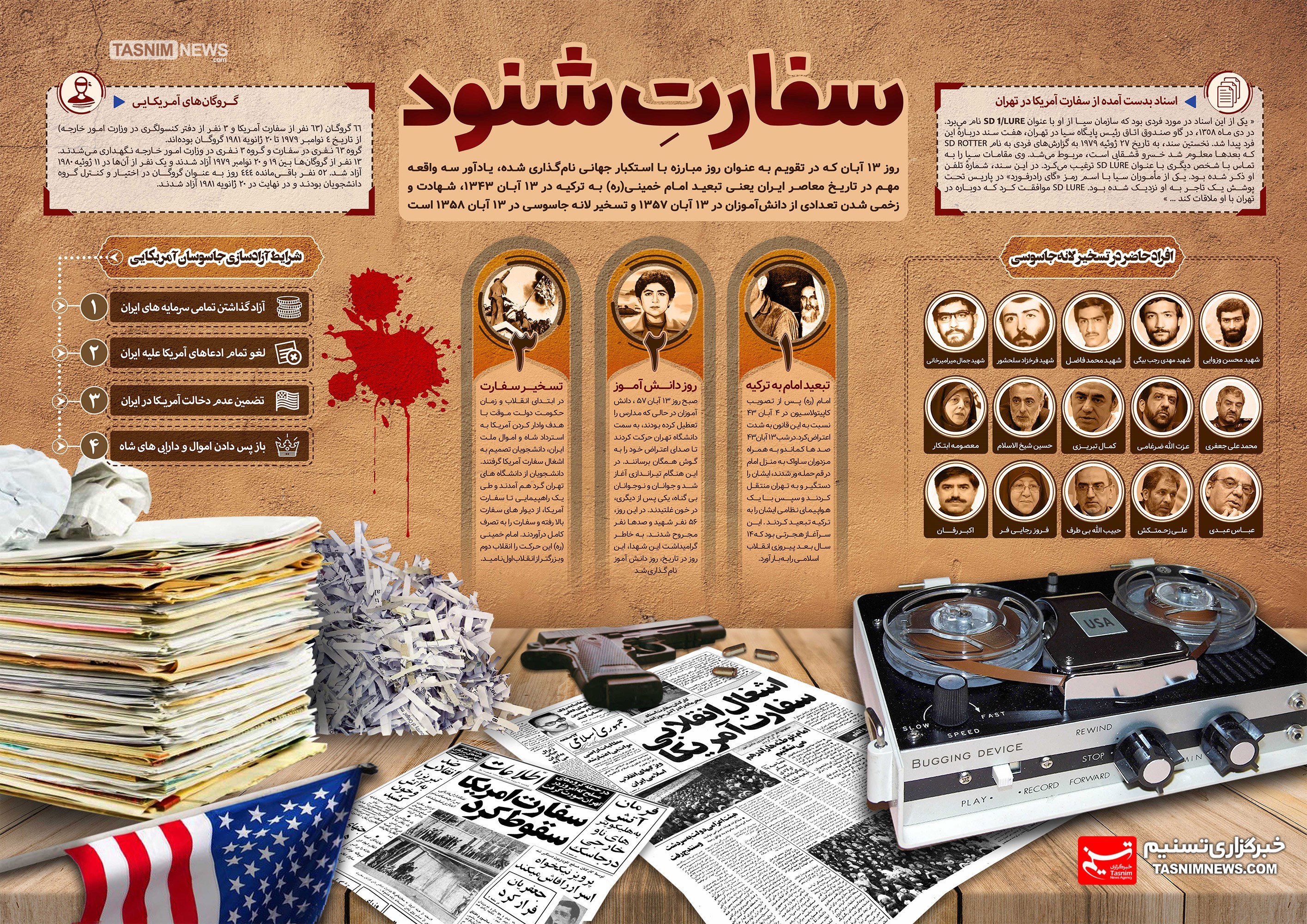 روز 13 آبان که در تقویم به عنوان روز مبارزه با استکبار جهانی نامگذاری شده، یادآور سه واقعه مهم در تاریخ معاصر ایران یعنی تبعید امام خمینی(ره) به ترکیه در 13 آبان 1343، شهادت و زخمی شدن تعدادی از دانشآموزان در 13 آبان 1357 و تسخیر لانه جاسوسی در 13 آبان 1358 است.