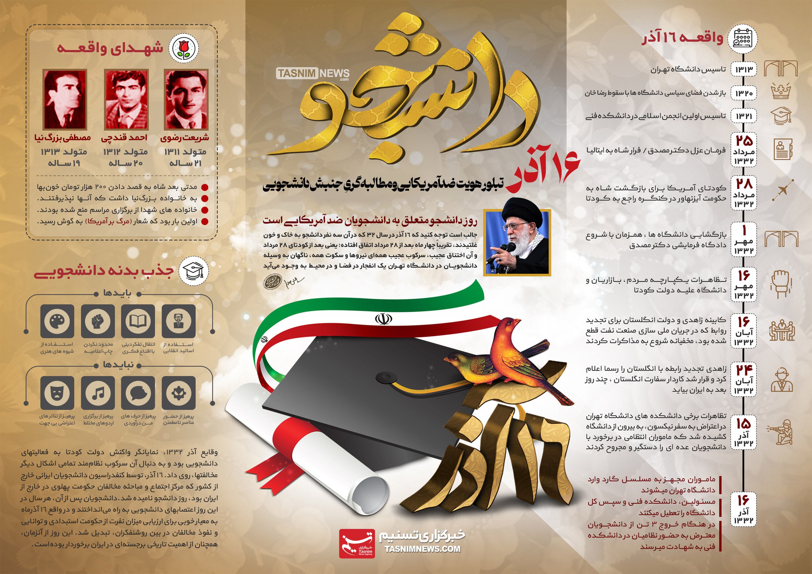 اینفوگرافیک/ 16 آذر، تبلور هویت ضدآمریکایی و مطالبهگریِ جنبش دانشجویی