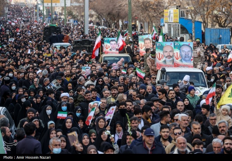 مراسم تشییع پیکر مطهر 9 شهید امنیت حوادث اغتشاشات اخیر بعد از ظهر 22دی ماه 1404 با حضور مردم شهید پرور از محل شهادت این شهدا تا گلزار شهدا شهر قزوین برگزار شد.