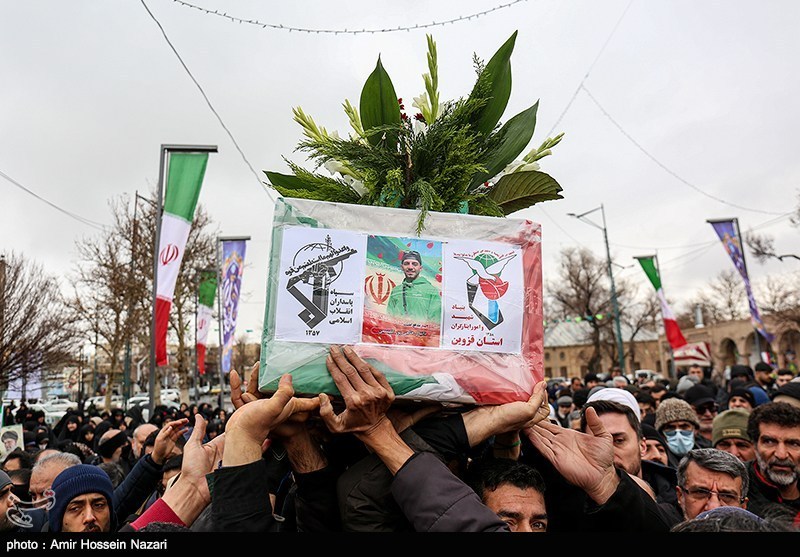 مراسم تشییع و تدفین شهید مدافع امنیت دانیال حاجی پور که در جریان اغتشاشات اخیر در شهر قزوین به شهادت رسیده بود صبح امروز با حضور مردم شهید پرور از خیابان شهدا تا گلزار شهدا شهر قزوین برگزار شد.