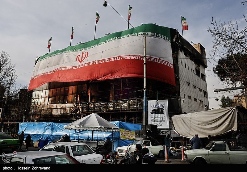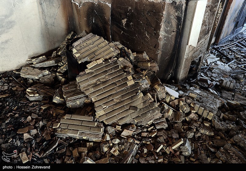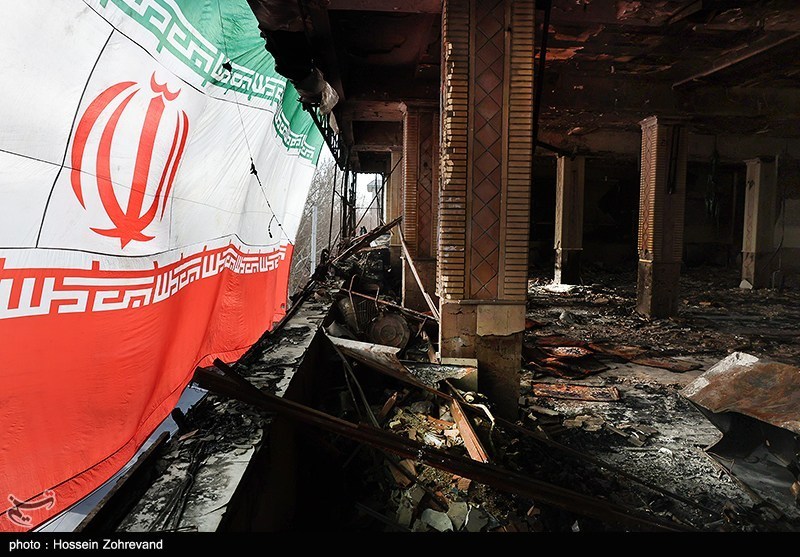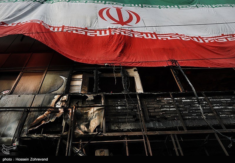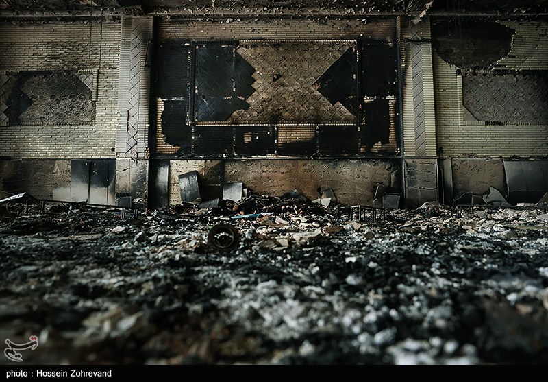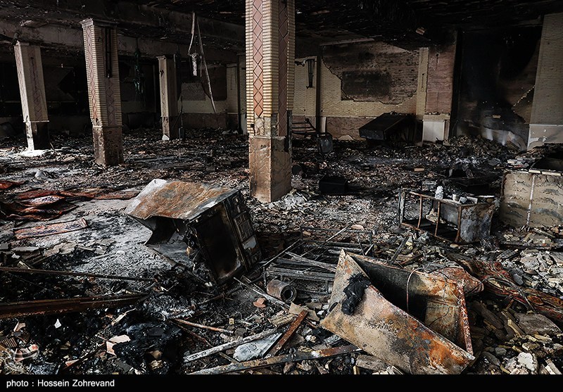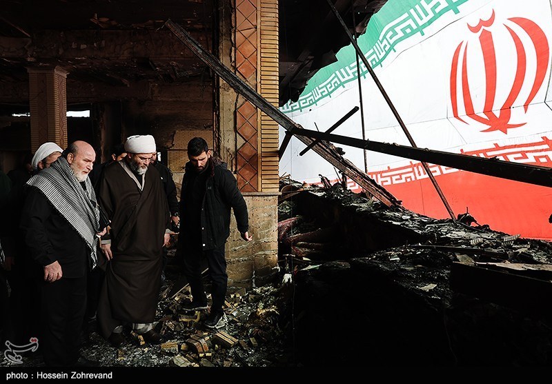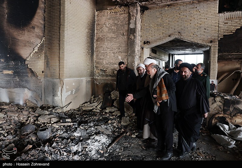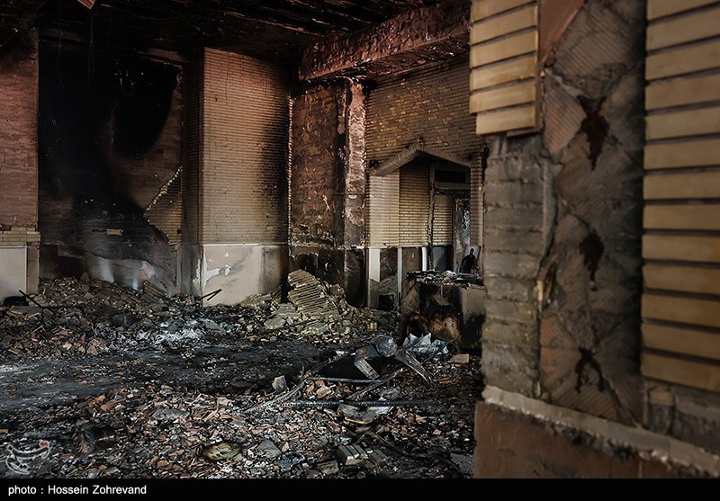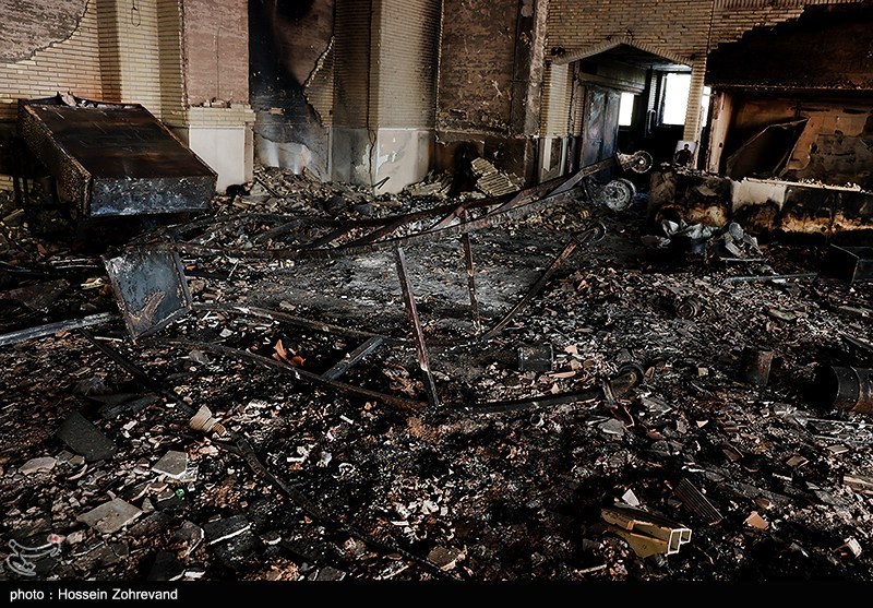 آثار حمله اغتشاشگران به یکی از شناخته شدهترین هیئات مذهبی تهران(موج الحسین) که توسط آشوبگران در 18 دیماه به آتش کشیده شد.