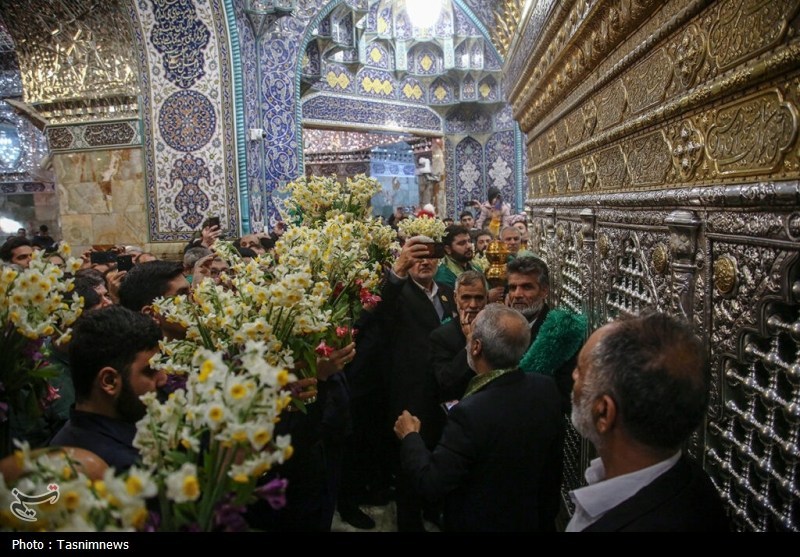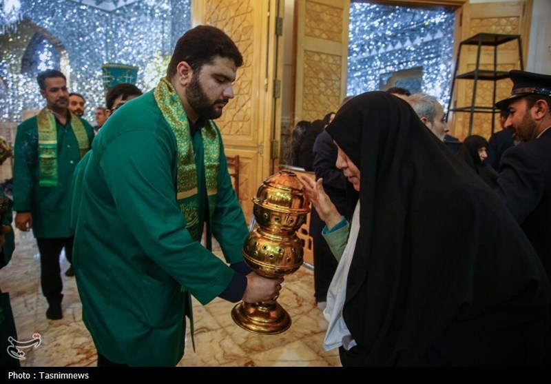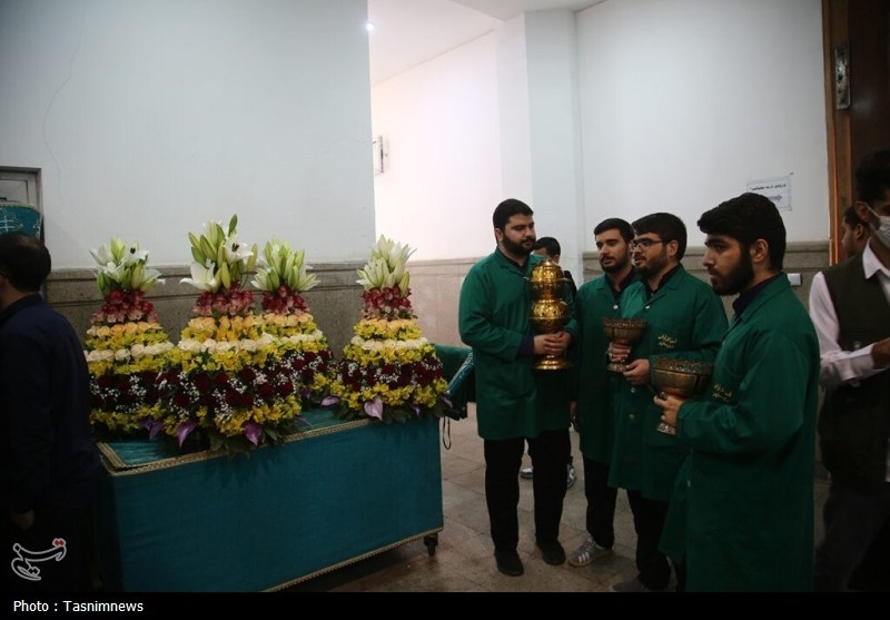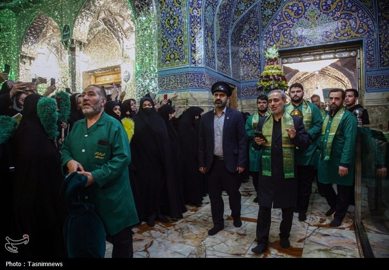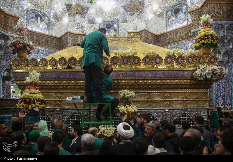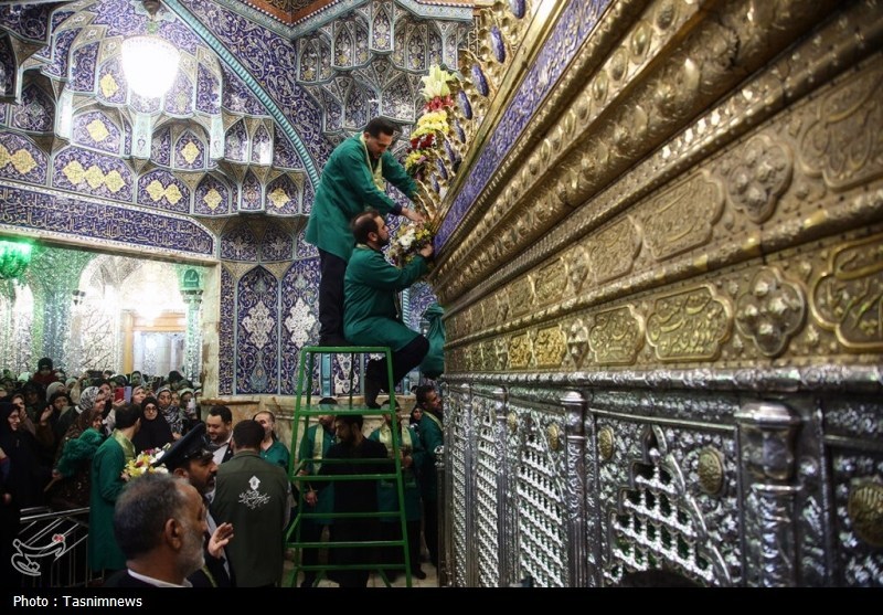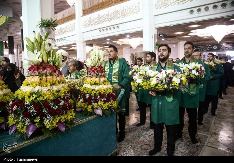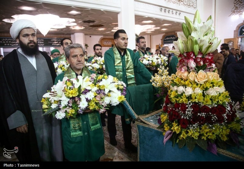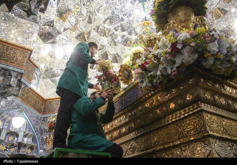 آیین گلآرایی ضریح مطهر حرم مطهر حضرت فاطمه معصومه(س) در آستانه عید سعید مبعث با حضور خادمان برگزار شد.