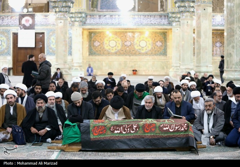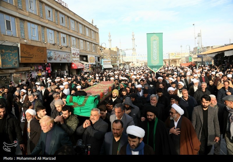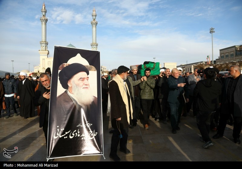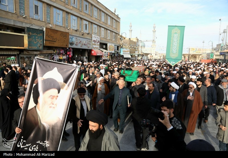 مراسم تشییع پیکر آیتالله سید هادی حسینی، سیستانی برادر آیتالله سید علی سیستانی از مراجع تقلید شیعیان، امروز یکشنبه 28 دی ماه از مسجد امام حسن عسکری(ع) به سمت حرم مطهر حضرت معصومه(س) برگزار شد.