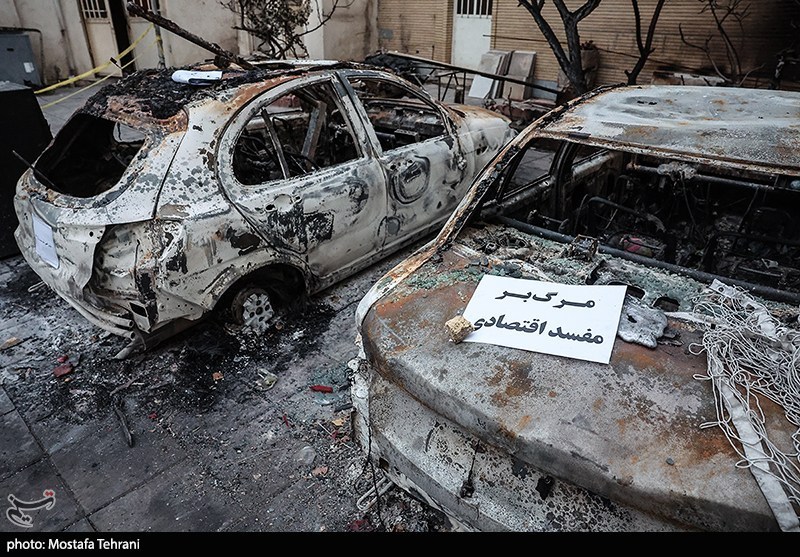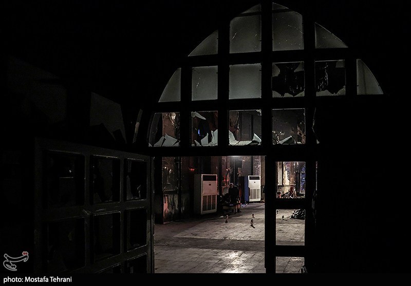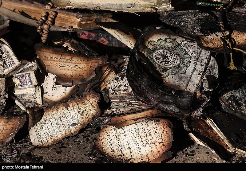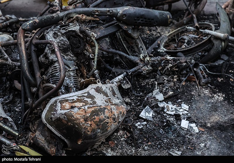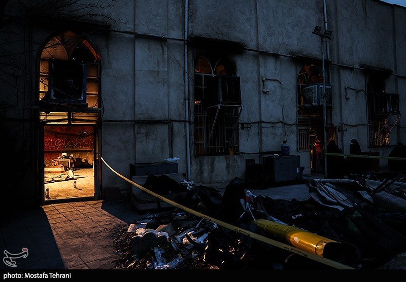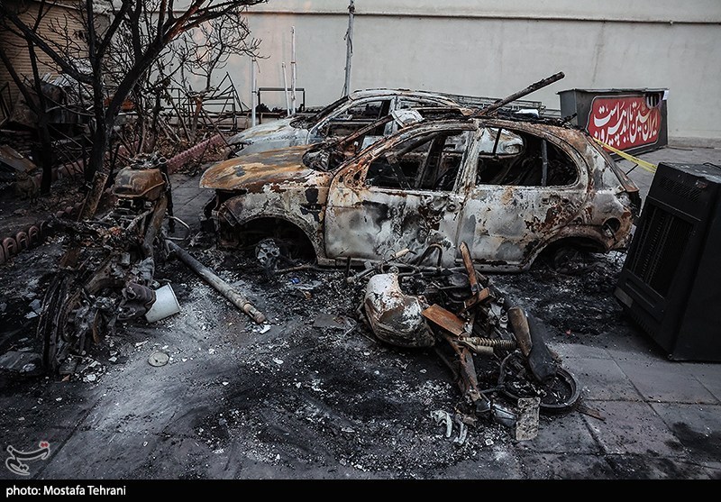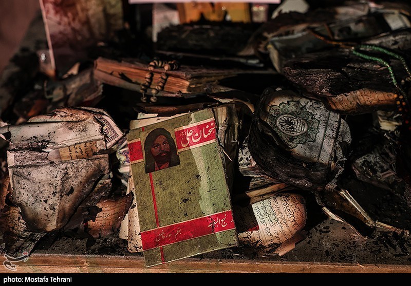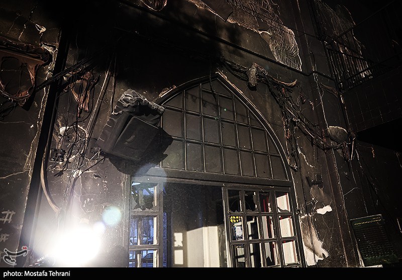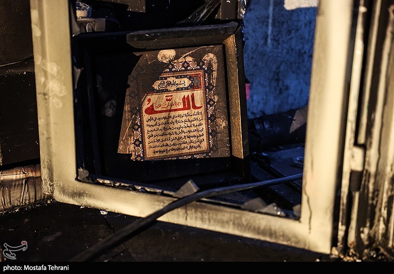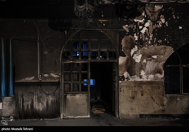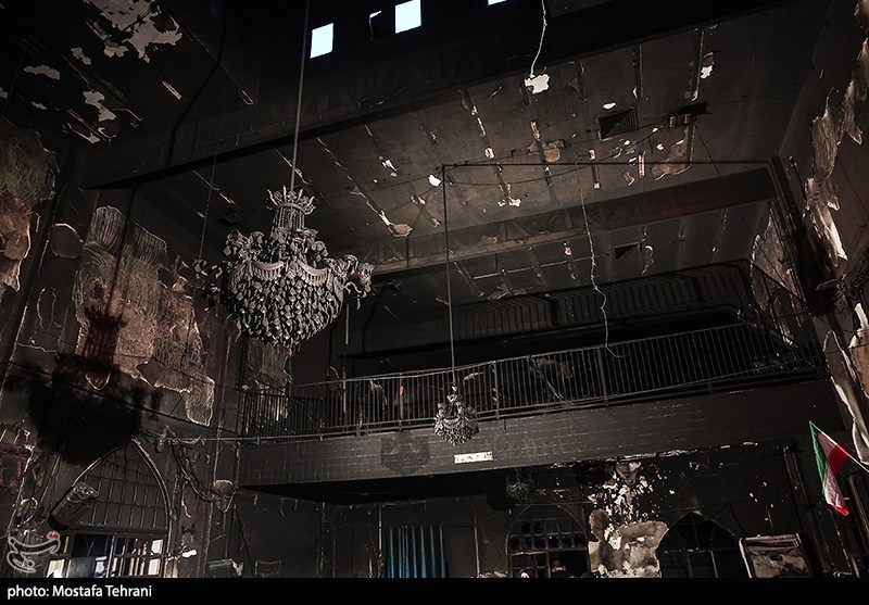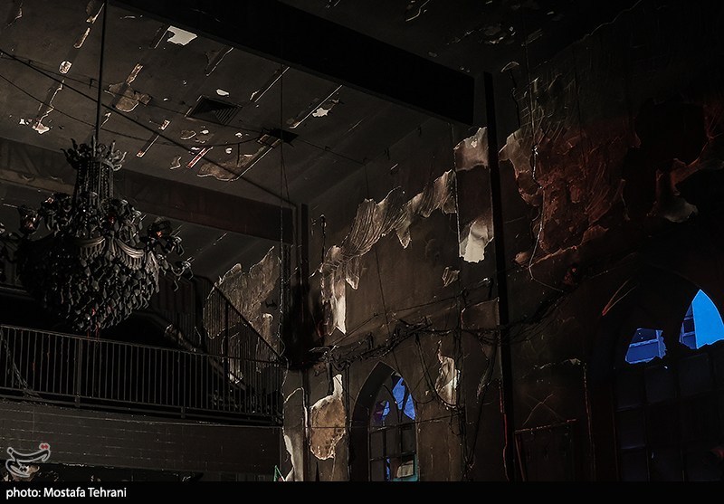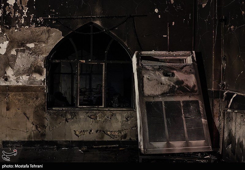 آثار حمله و آتش زدن مسجد شهید بهشتی تهران توسط آشوبگران