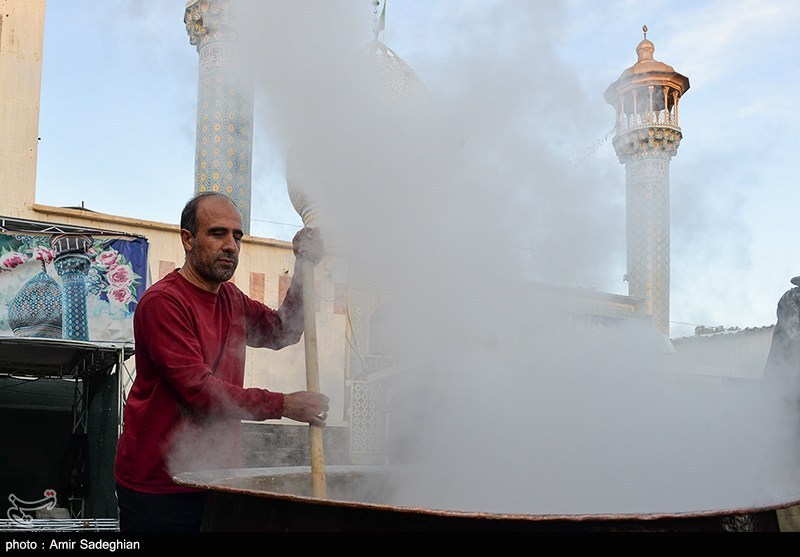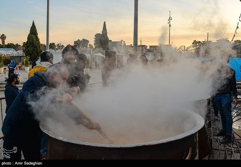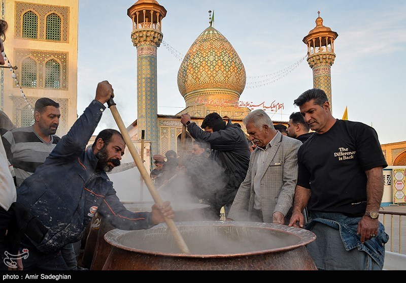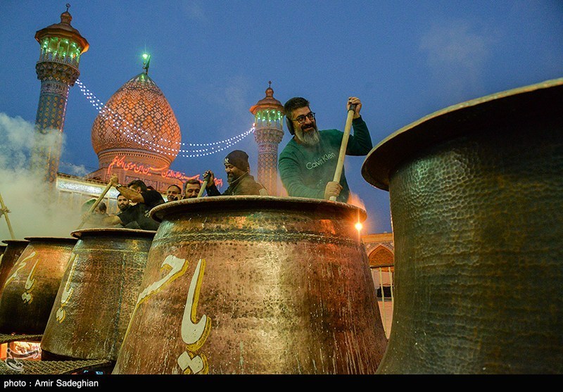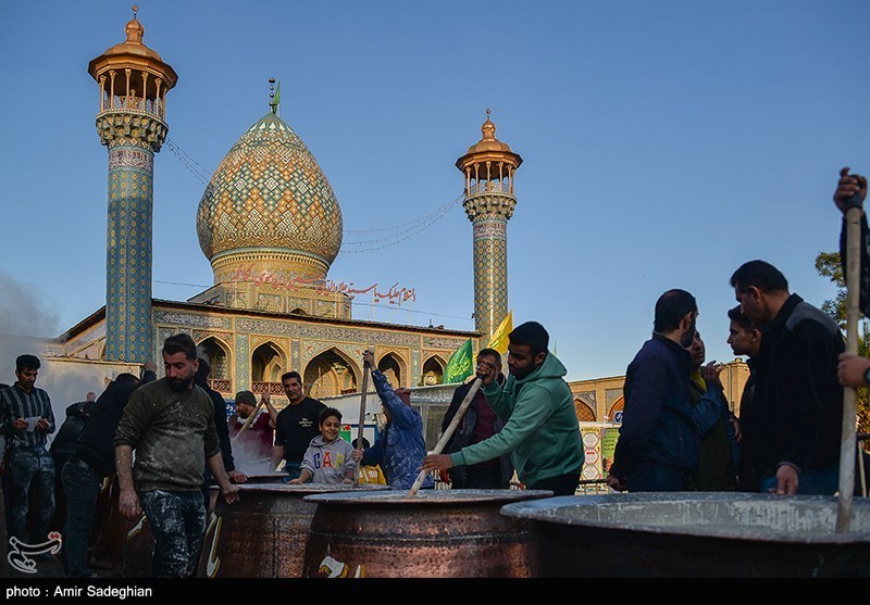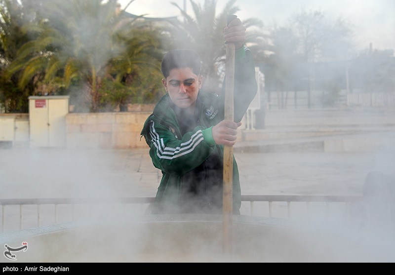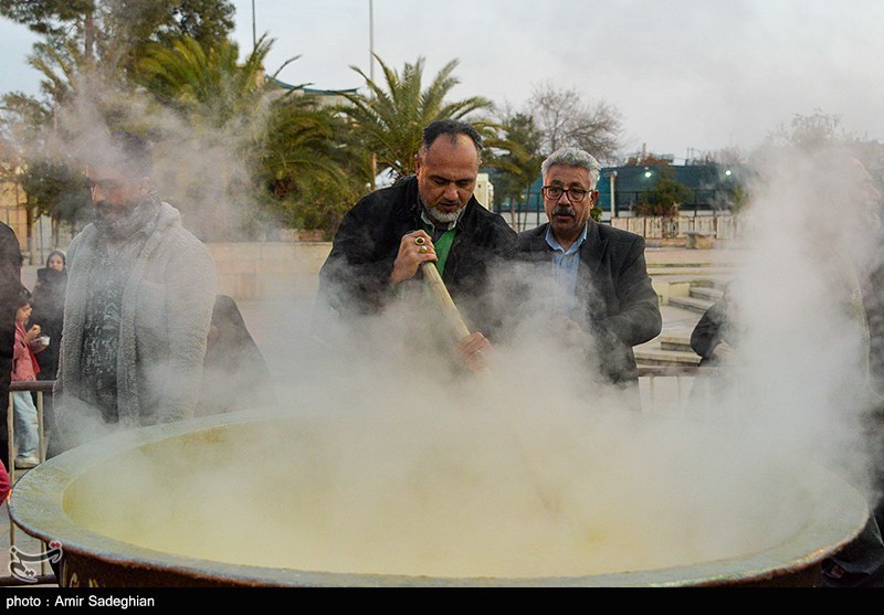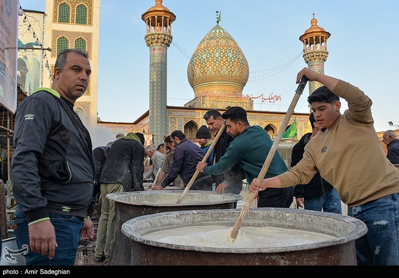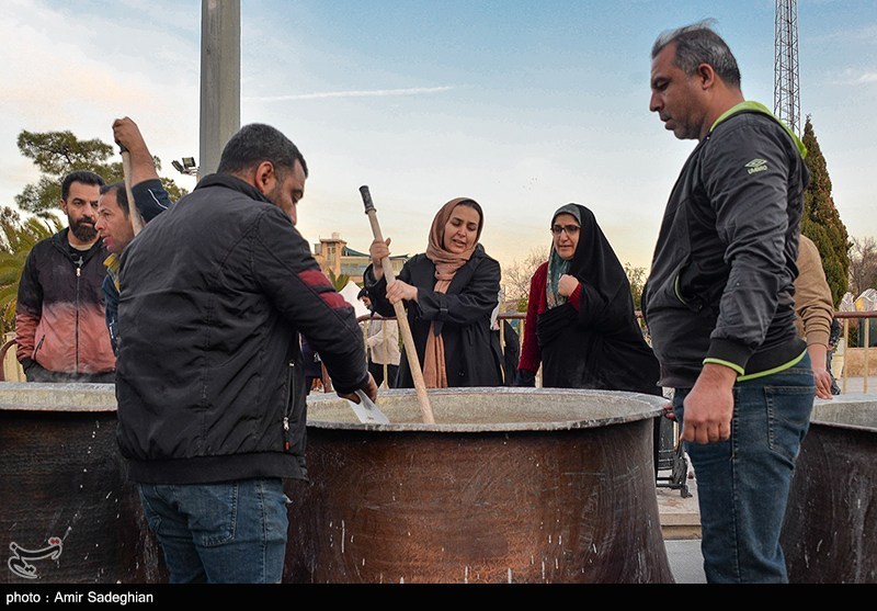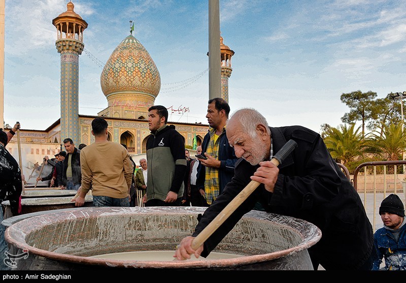 مراسم پخت 20 تن سمنو یا سمنی شیرازی به همت جوانان هیئت جان نثاران صاحب الزمان شیراز همزمان با اعیاد شعبانیه در محوطه حرم مطهر امامزاده سید علاءالدین شیراز در حال برگزاری است .