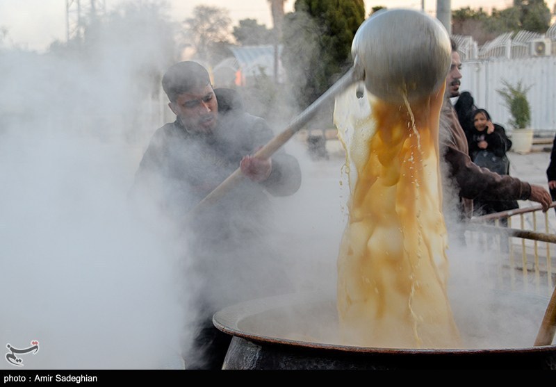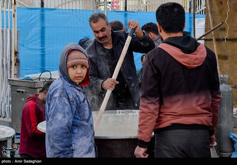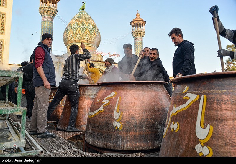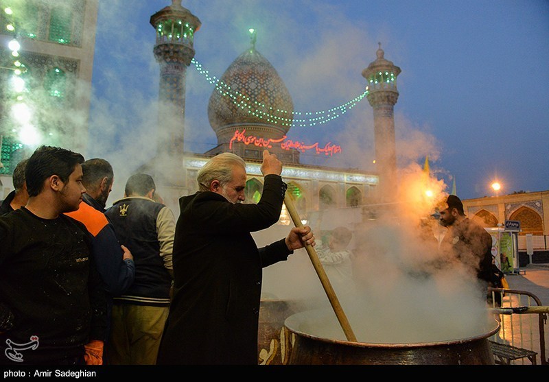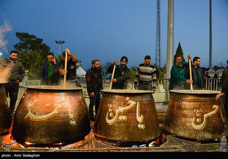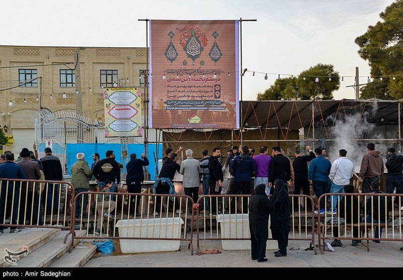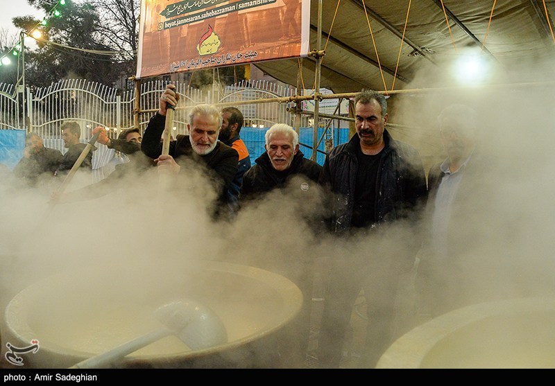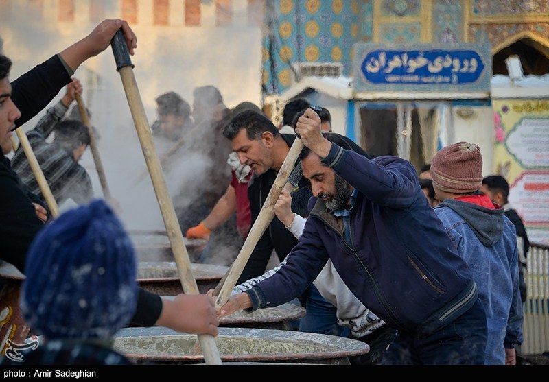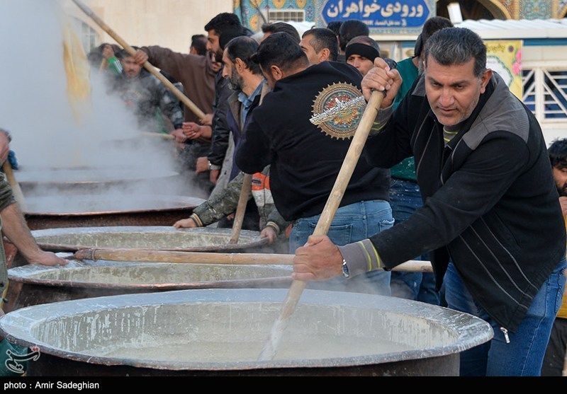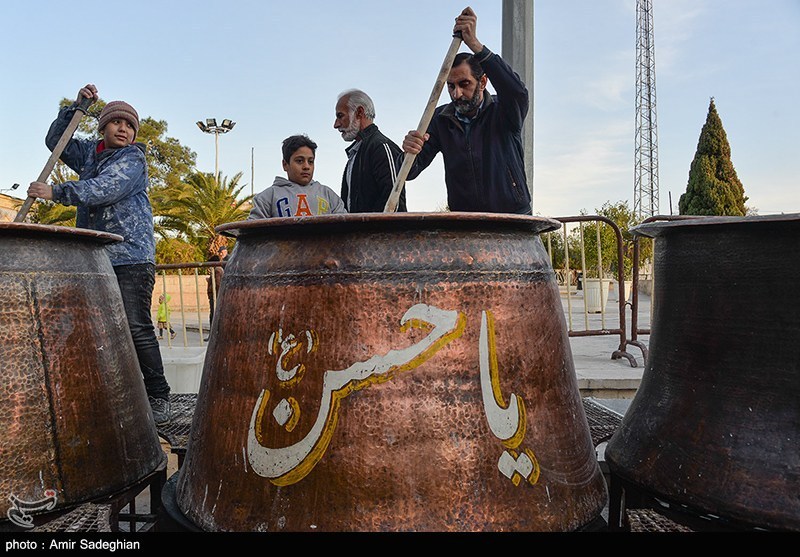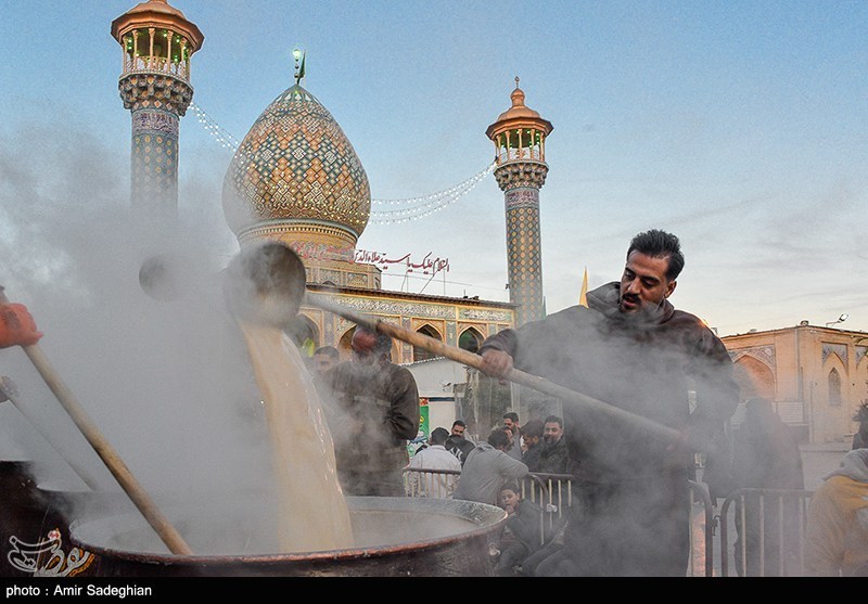 مراسم پخت 20 تن سمنو یا سمنی شیرازی به همت جوانان هیئت جان نثاران صاحب الزمان شیراز همزمان با اعیاد شعبانیه در محوطه حرم مطهر امامزاده سید علاءالدین شیراز در حال برگزاری است .