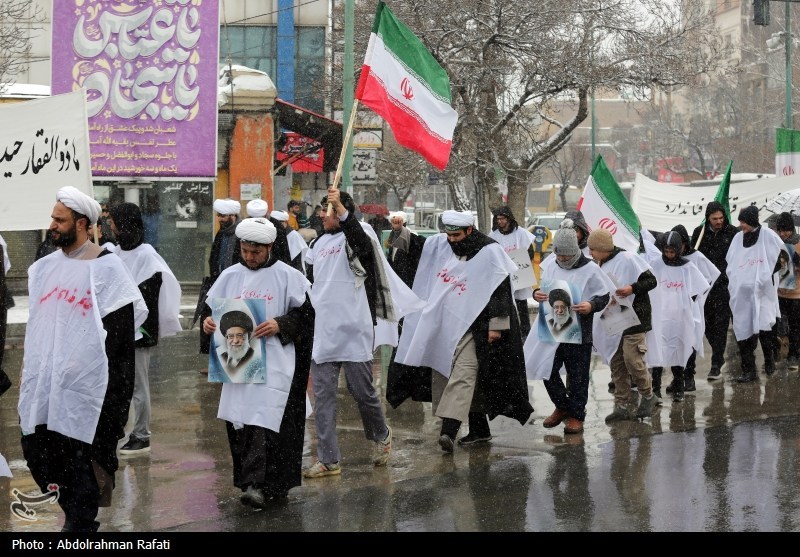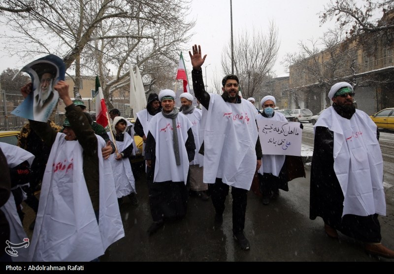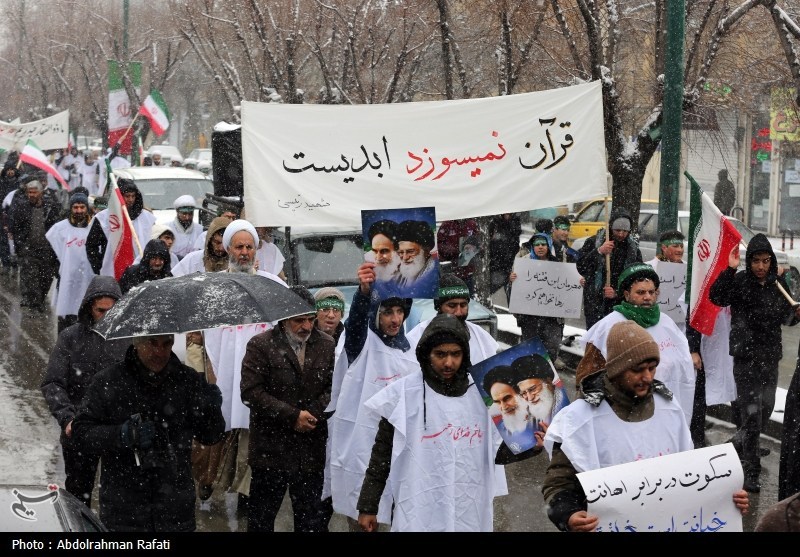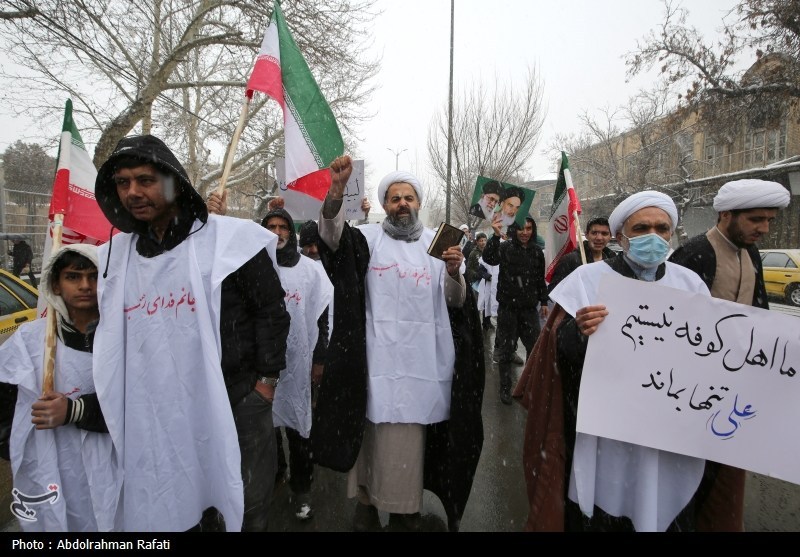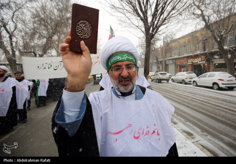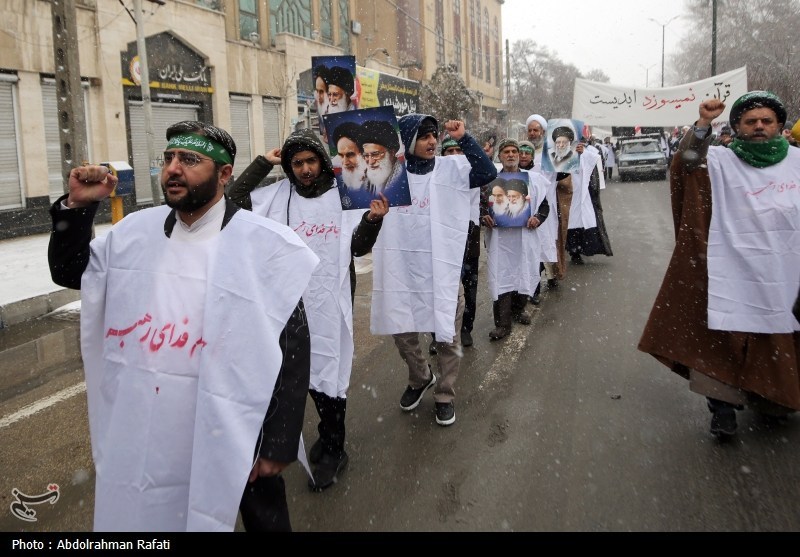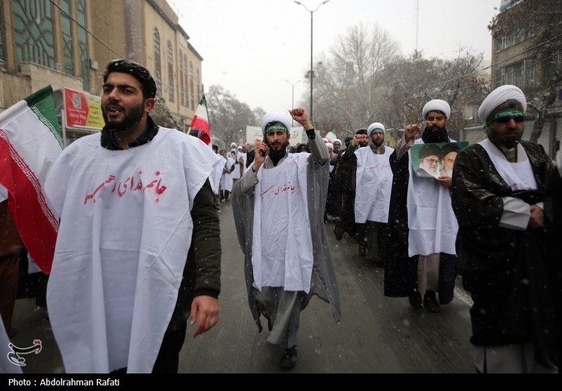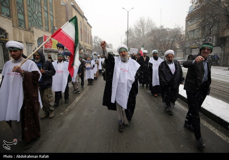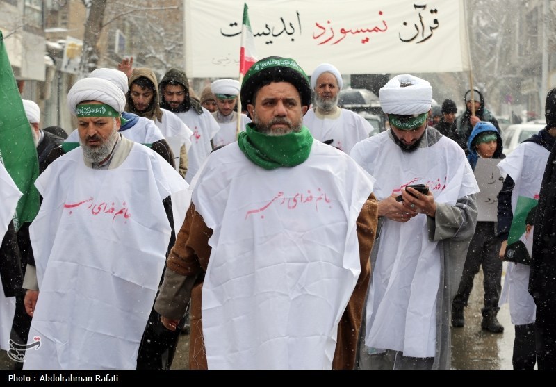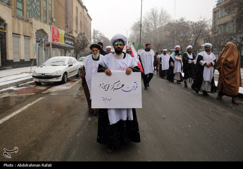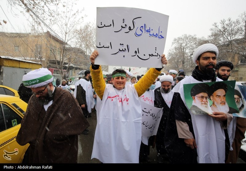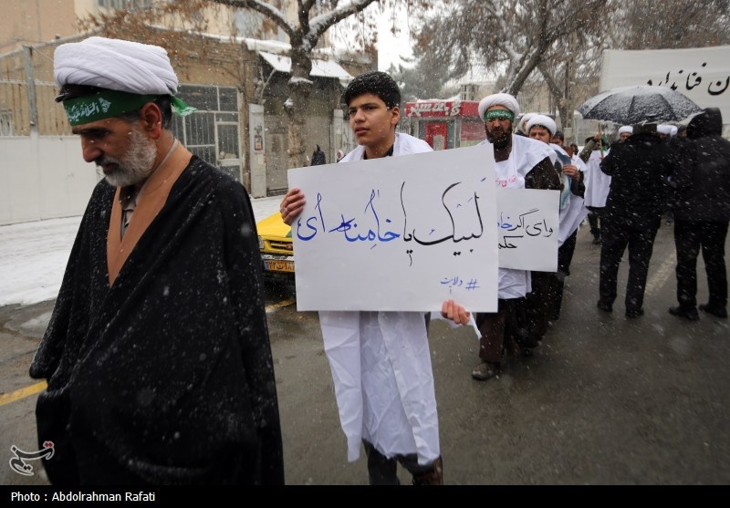 راهپیمایی طلاب و روحانیون در محکومیت اهانت به قرآن کریم و حمایت از رهبری