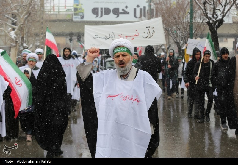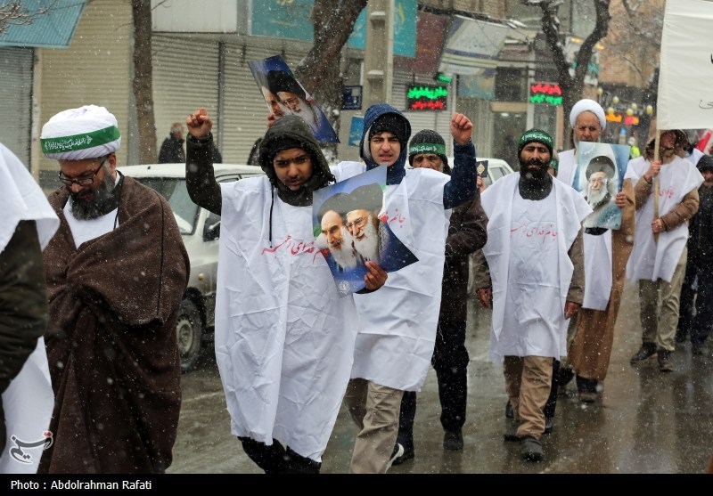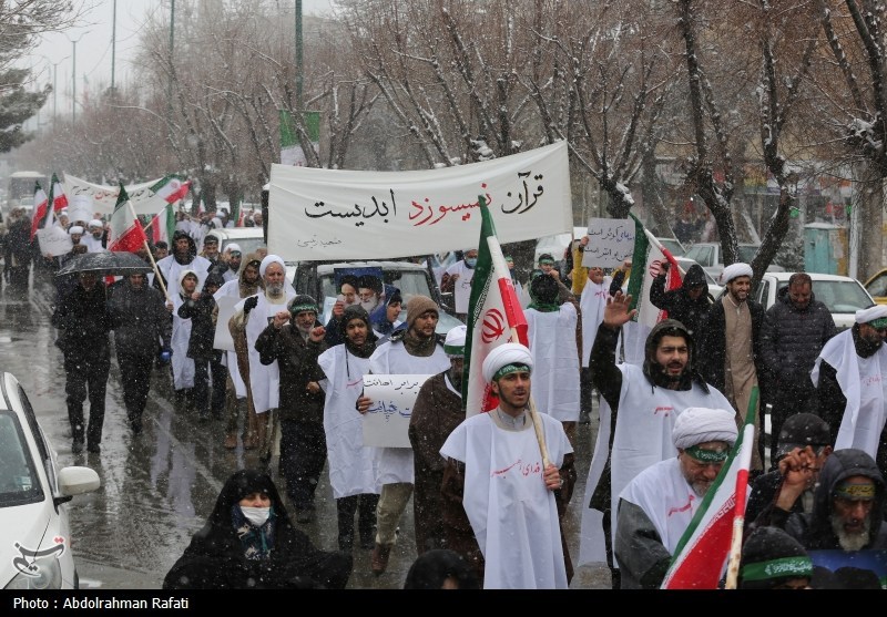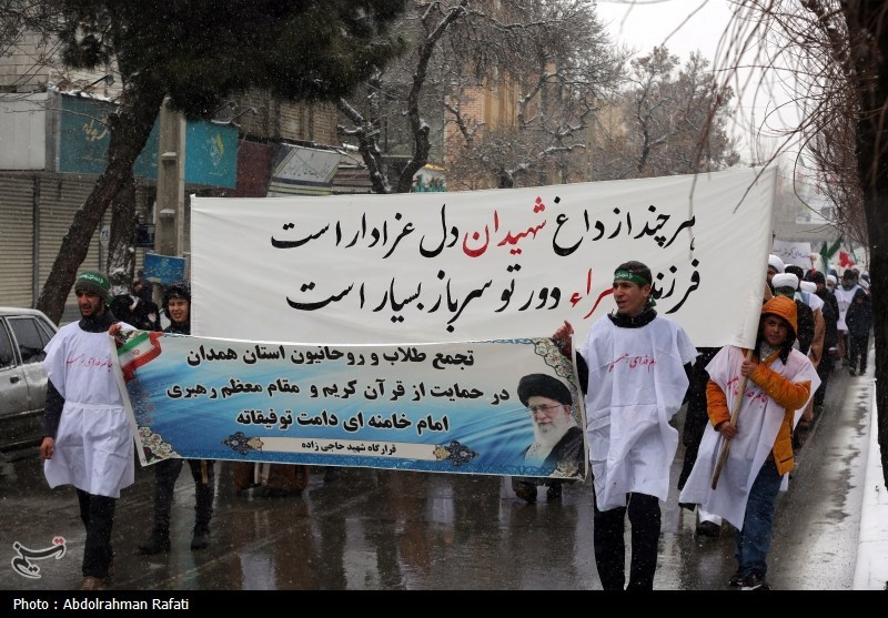 طلاب و روحانیون مدارس و حوزه های علمیه همدان صبح امروز جمعه سوم بهمن ماه در محکومیت اهانت به قرآن کریم و یاوه گویی های دشمنان و همچنین در حمایت از مقام معظم رهبری از مدرسه علمیه زنگنه تا حسینیه امام خمینی(ره) راهپیمایی کردند.