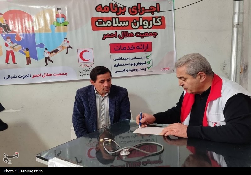 کاروان سلامت هلالاحمر در گازرخان قزوین خدمات پزشکی رایگان، دارو و سنجش فشار و اکسیژن ارائه کرد.
