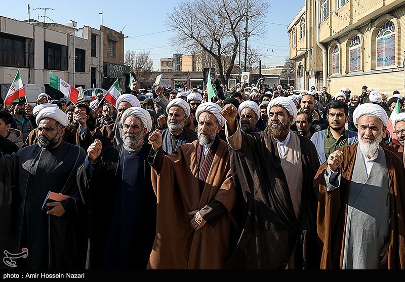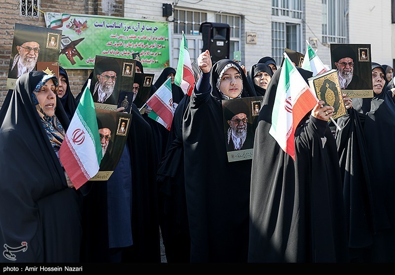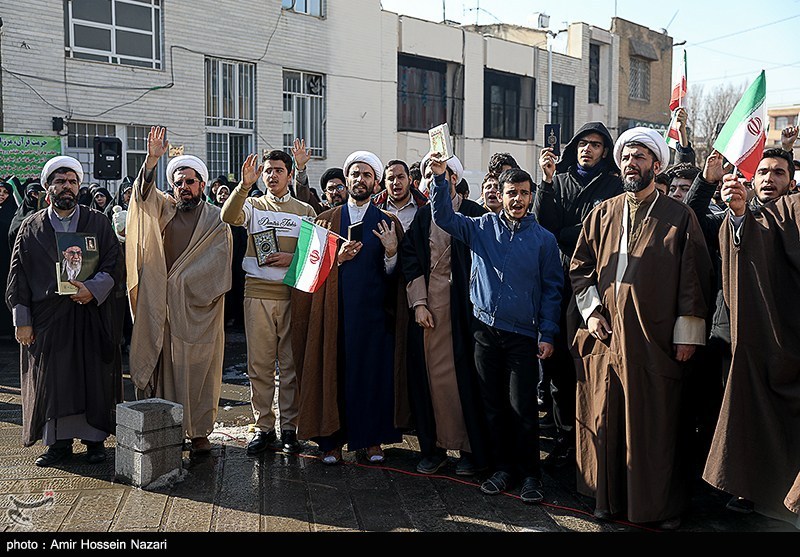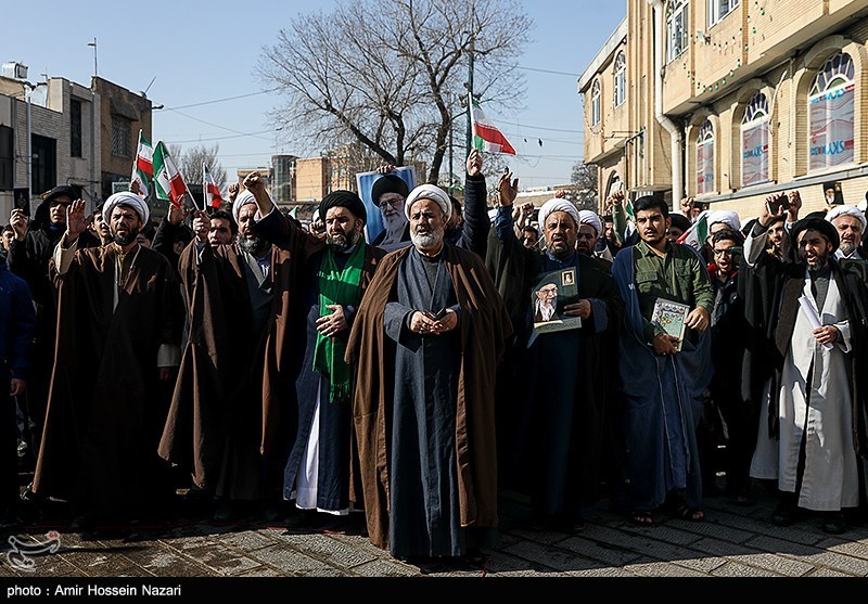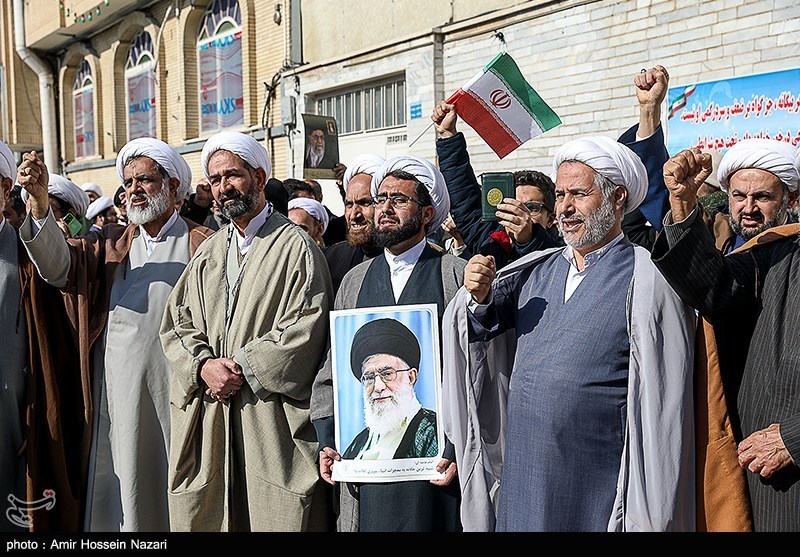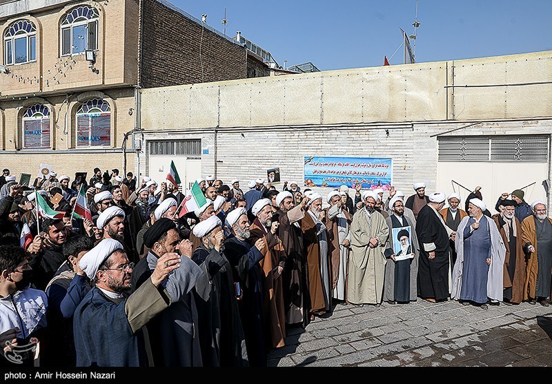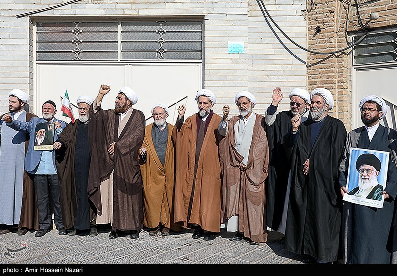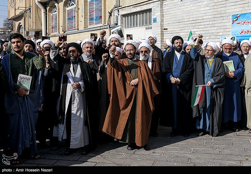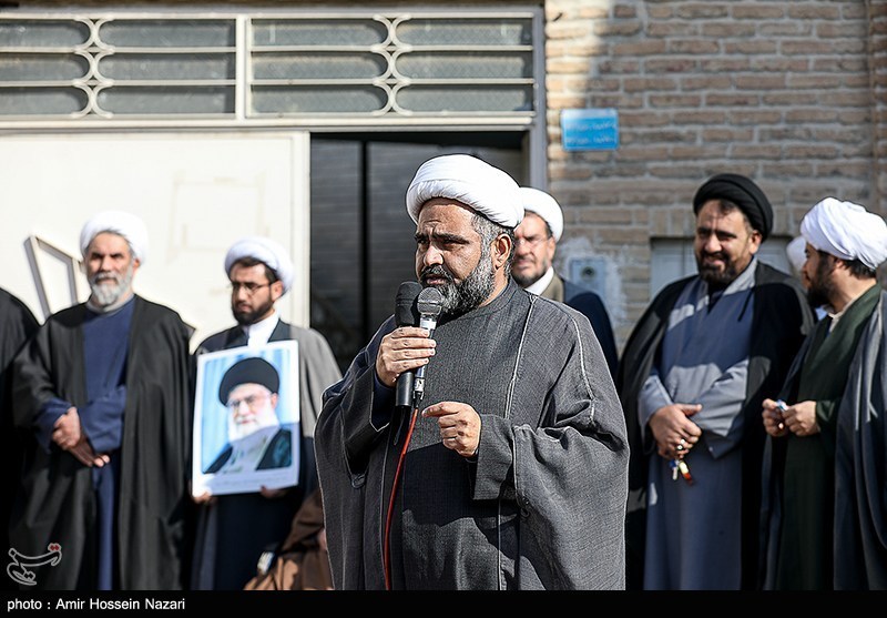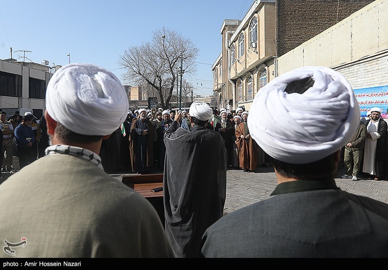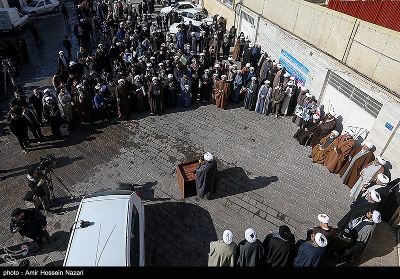 اجتماع بزرگ جامعه حوزویان استان قزوین همزمان با سراسر کشور در اعتراض و اعلام انزجار به هتک حرمت به ساحت مقدسات، قرآن کریم، مساجد و ولایت فقیه امروز در محوطه مسجد ومدرسه شیخ الاسلام برگزار شد