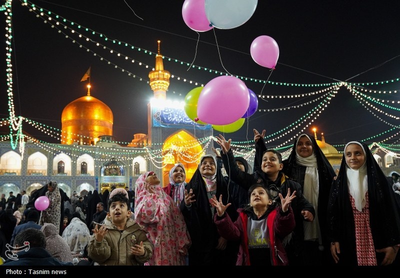 در میلاد حضرت حجتبنالحسن (عج)، حرم مطهر رضوی حال و هوایی متفاوت دارد؛ صحنهای رضوی غرق نور و شادیاند.