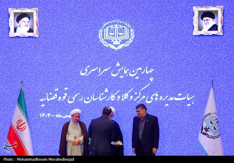 چهارمین همایش سالانه مرکز وکلای قوه قضاییه صبح سهشنبه (21 بهمن 1404) با حضور «غلامحسین محسنی اژهای» رئیس قوه قضاییه، رئیس مرکز وکلای قوه قضاییه و جمعی از مقامات قضایی و وکلای دادگستری در مجتمع شهید بهشتی برگزار شد.