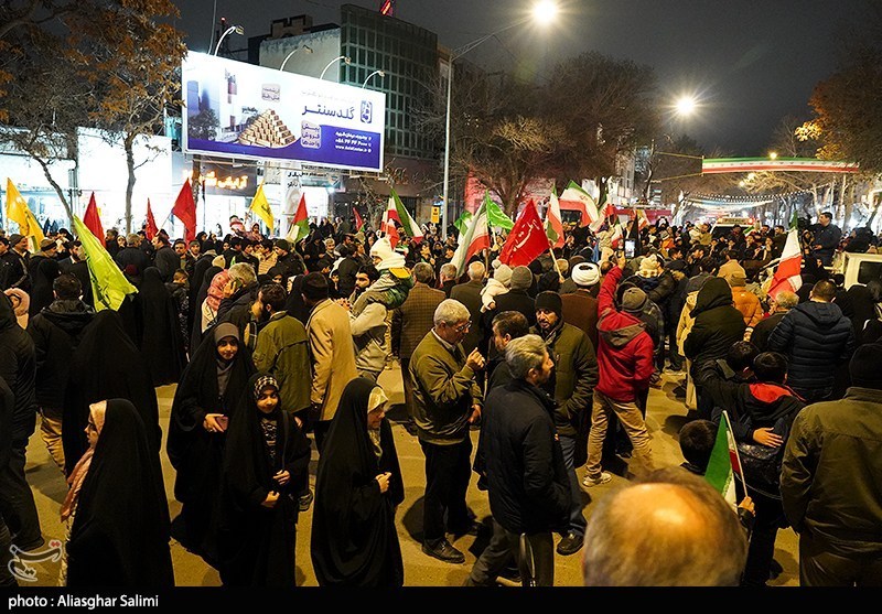 نور افشانی و جشن شب 22 بهمن ، سالروز پیروزی انقلاب اسلامی با حضور مردم ولایت مدار و انقلابی شهرستان بجنورد با سر دادن شعار الله اکبر در میدان شهید این شهر برگزار شد