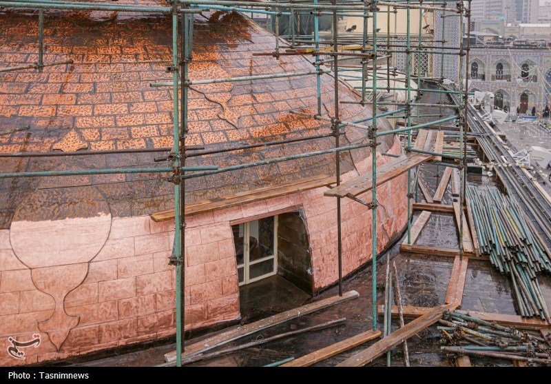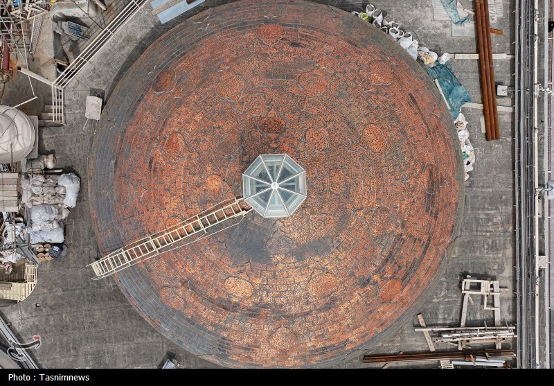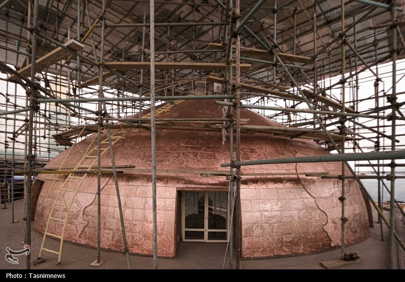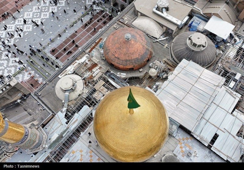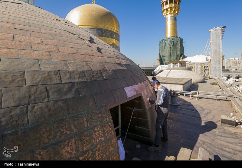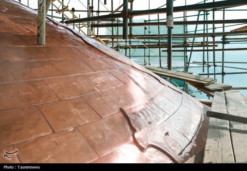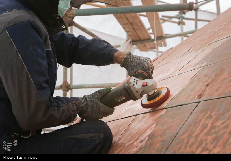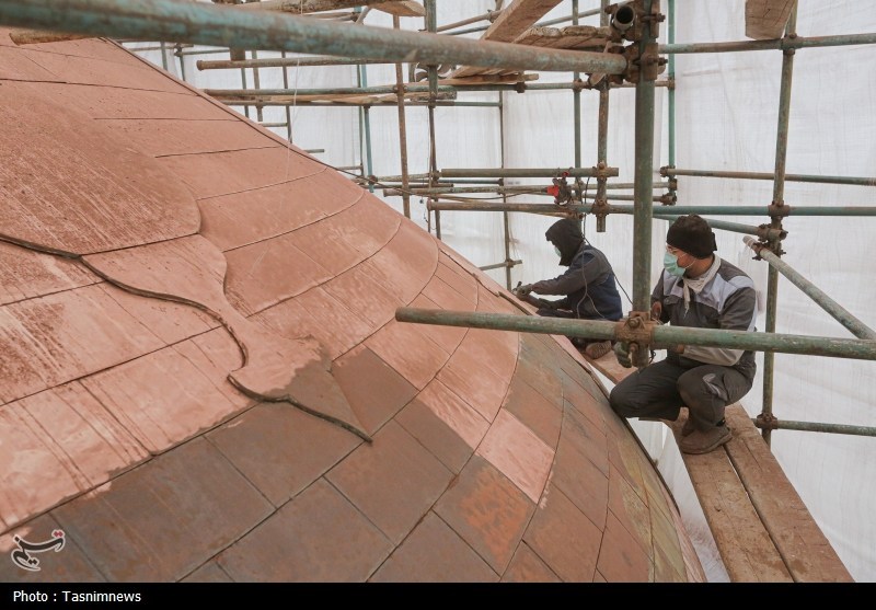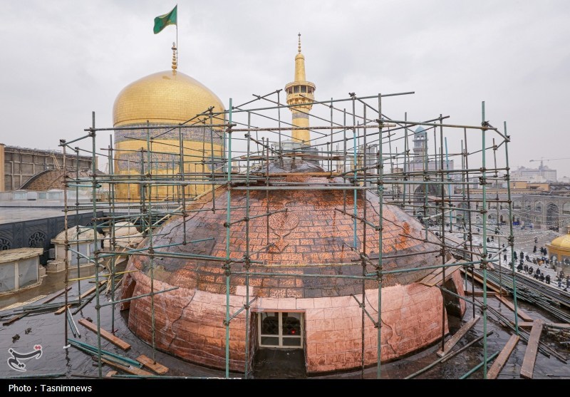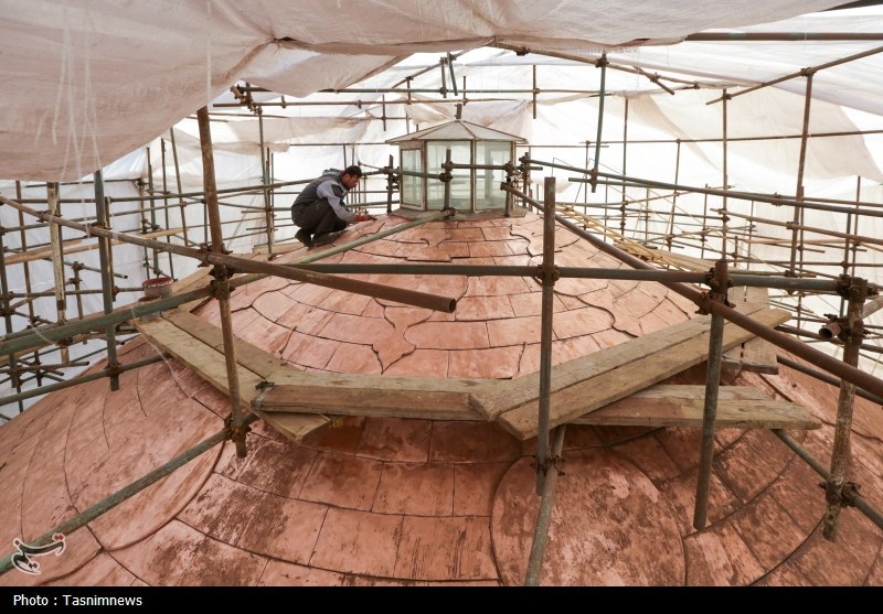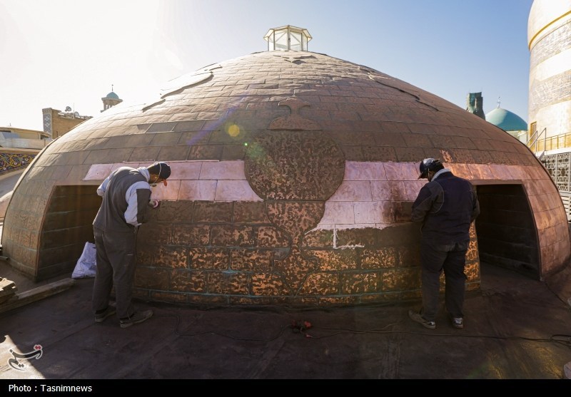 عملیات مرمت پوسته نمای گنبد اللهوردیخان حرم امام رضا(ع) با هدف حفظ اصالت تاریخی، بهبود منظر بیرونی انجام شد.